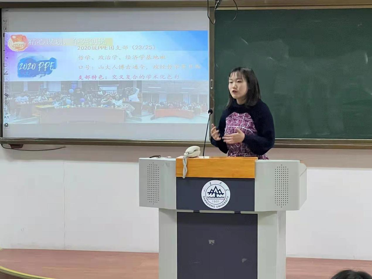 最后,优秀团支书代表2019级国英班团支书孙一昊、2020级PPE班团支书张亦诺进行了团支部建设经验分享。孙一昊从思想引领、制度建设、社会服务和文体劳育四个层面系统讲解了如何发挥团支部凝聚青年的主导作用,张亦诺结合其团支部建设经验介绍了其团支部活动开展的先进经验。两位团支书就各团支部委员提出的问题进行了回答。