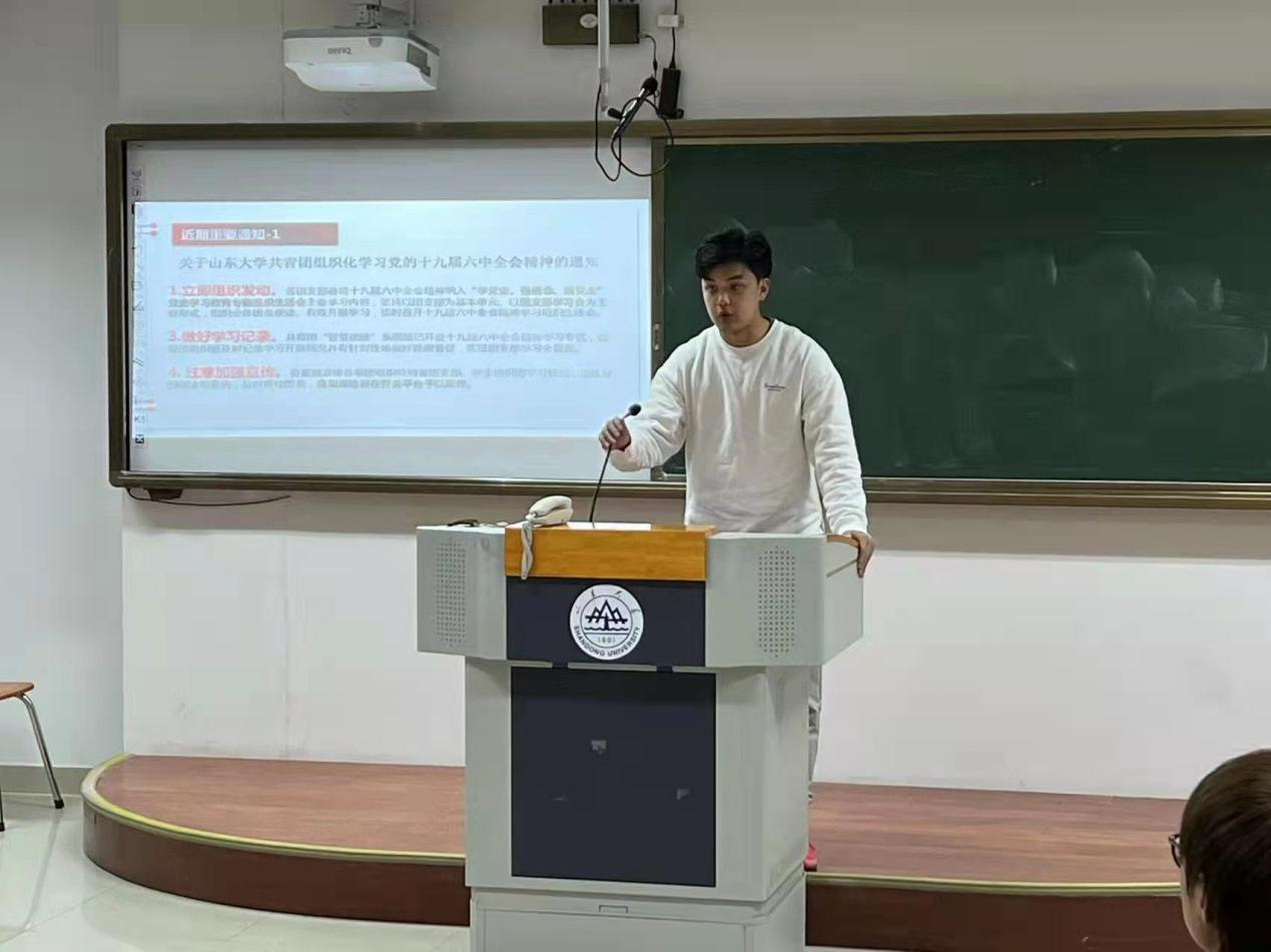 首先,学院团委副书记王朔就近期需要举办的主题团日活动和团支部劳动教育工作进行了讲解。王朔指出,团支书要时刻树立服务意识,保持思想的先进性,认真贯彻学习党的十九届六中全会精神,以扎实的态度开展主题团日活动和劳动教育,全面提升团支部的组织力和凝聚力。