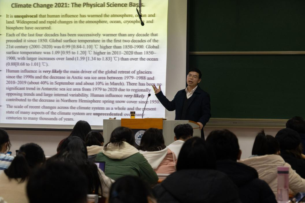 讲座伊始,李慧明教授从学术角度为大家简单阐述了全球气候变化及其严重影响。他首先指出,“气候变化”与“全球变暖”这两个词虽然有时交互使用,但还是有些差别。紧接着,李慧明教授从地球生态系统、经济发展、疾病传播、自然灾害、国家和国际安全等方面阐释了全球气候变化的严重影响。