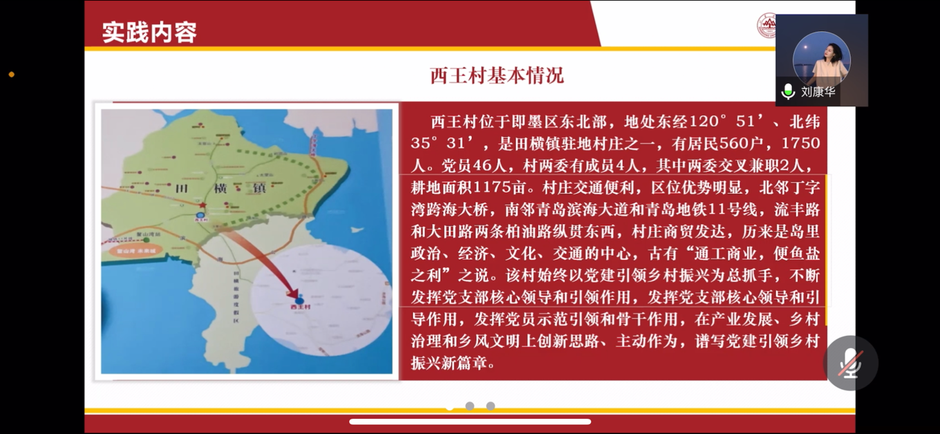 应防疫政策要求,本次寒假社会实践结项答辩会采取线上答辩的形式。答辩主要包括实践展示与评委点评两个环节,最终根据评委打分结果评选出优秀团队。答辩开始前,主持人就本次答辩会的主题、答辩规则以及流程做出了细致介绍。随后,各队代表有条不紊地进行了项目汇报,他们分别聚焦基层党建、乡村振兴、政企合作、应急管理以及十九届六中全会精神宣讲等热点话题,用精炼的语言加以生动的讲解,充分展现了小组实践成果。