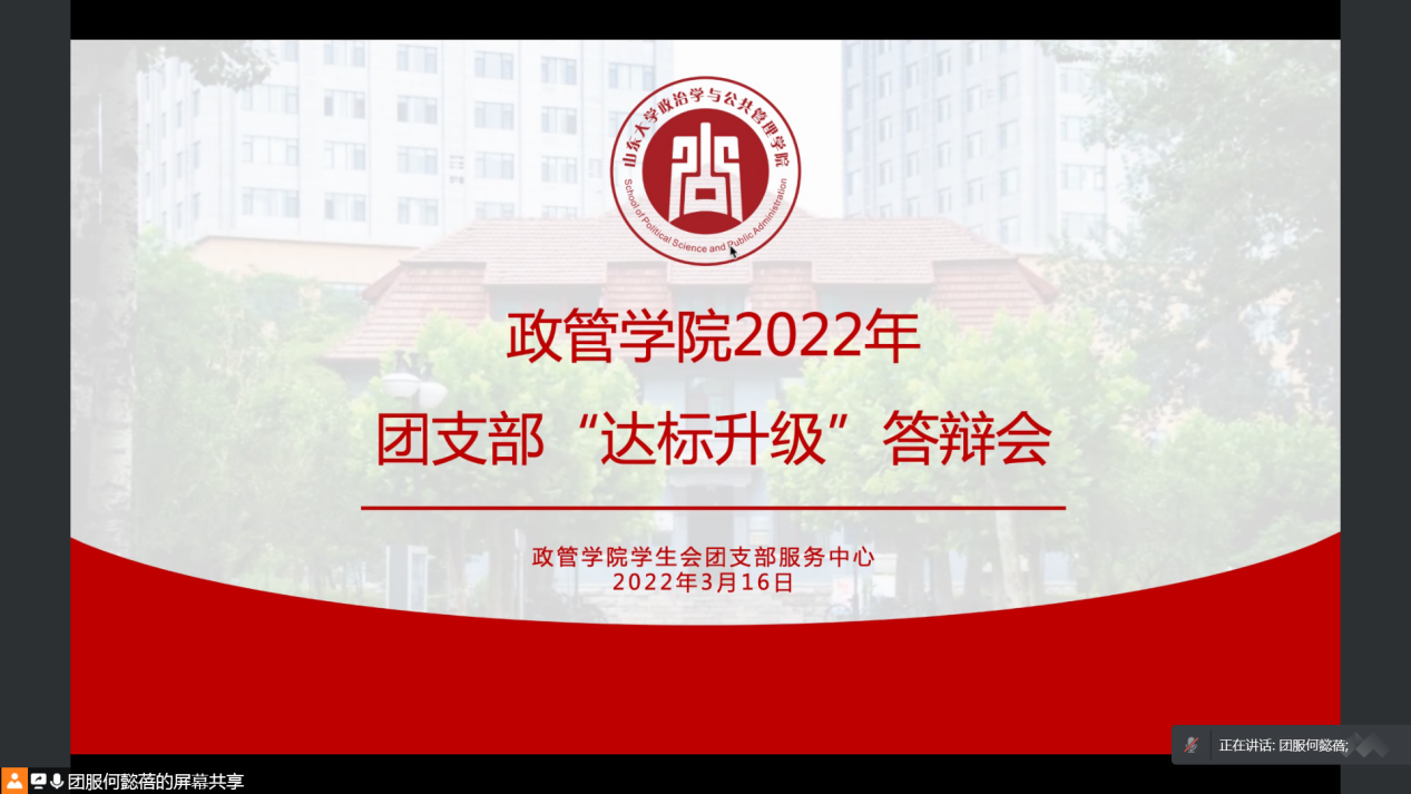 为切实加强学院学生团支部的组织建设,全面活跃团支部工作,增强团支部凝聚力和战斗力,按照校团委通知要求,澳门网投团委继续深入开展2022年度团支部“达标升级”工作,于3月16日晚以线上会议形式开展本年度团支部“达标升级”答辩会。澳门网投党委副书记马桂兰,学院本科生导师程龙、俞少宾,学院团委书记于玲,本科生辅导员臧丽丽、祝子翀、张弘扬出席。答辩会由院学生会团支部服务中心负责人何懿蓓主持。