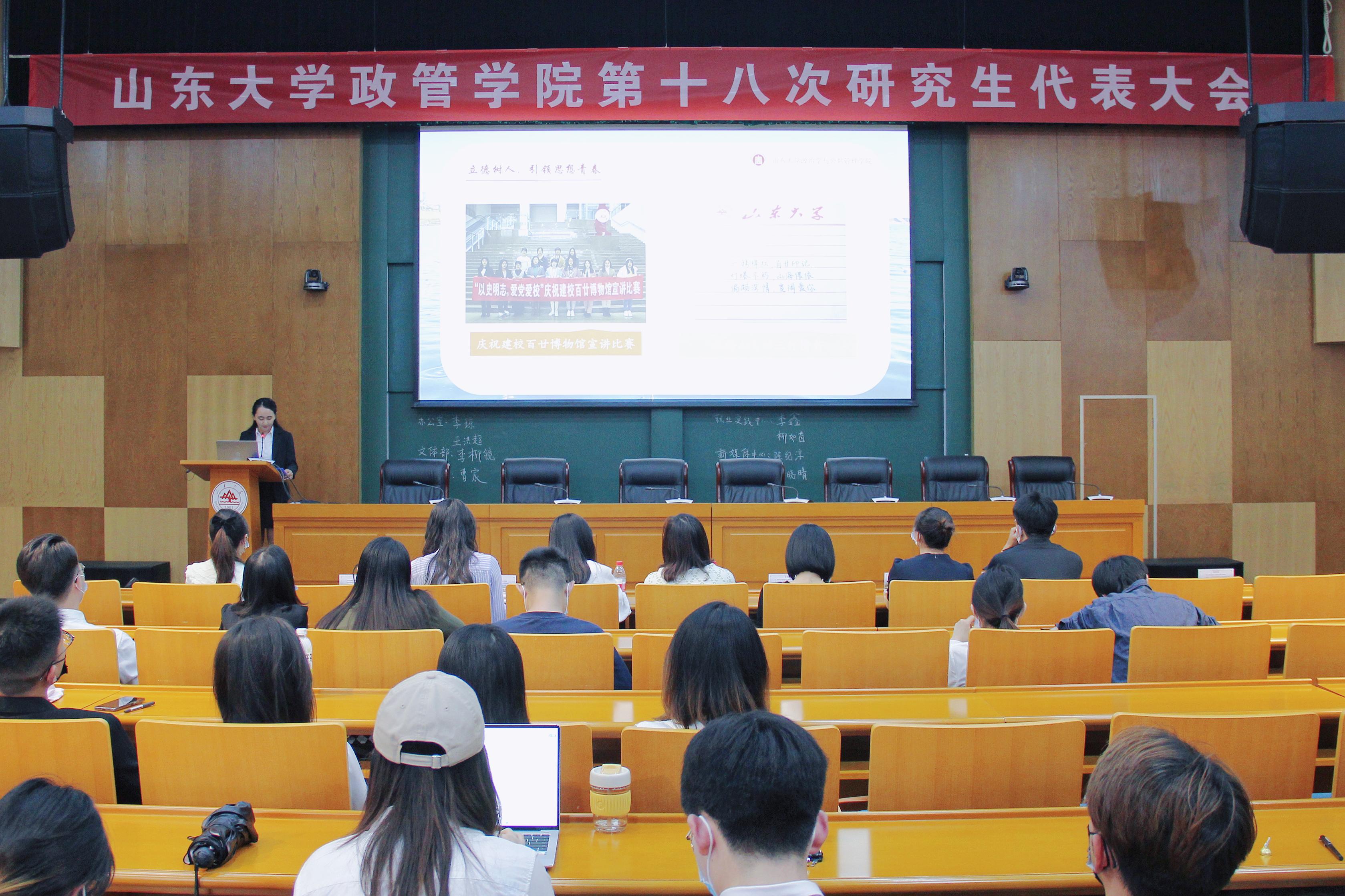 为保障学院研究生会工作的接力赓续,充分发挥研究生会的桥梁纽带作用,同时,继续培养为广大研究生同学服务的新一批高素质学生干部,澳门网投官方网站6月8日晚于华岗苑南楼五层报告厅召开了第十八次研究生代表大会。澳门网投官方网站党委副书记马桂兰、团委书记于玲、2021级研究生辅导员臧丽丽、2020级研究生辅导员白淼出席本次大会,第十七届研究生会全体成员及各年级研究生代表共73人参与本次大会。大会由澳门网投就业实践中心主任殷超凡主持。
