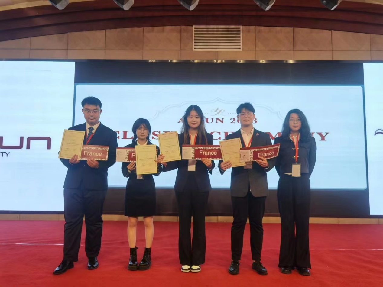 本次亚洲国际模拟联合国大会由北京大学主办,在北京大学线下举行,共设8个分会场。澳门网投官方网站参会的5位同学分属三个会场,曲子寰和李永昌作为法国代表出席联合国安理会会议,为防止恐怖分子获取大规模杀伤性武器做出杰出贡献;李佳萱和宋若雨作为法国代表出席联合国大会会议,为推进防止饥荒和粮食不安全问题贡献优秀方案;黄琳雅作为阿根廷代表出席联合国人权理事会会议,为流离失所女性的经济安全制定有效措施。