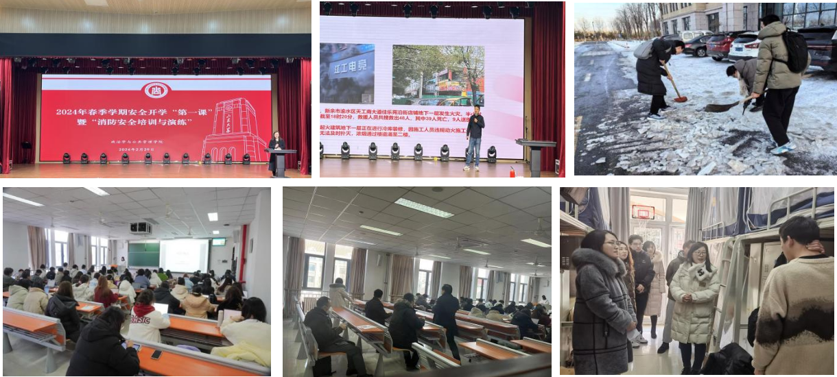 为进一步加强大学生安全教育的强大合力,积极借助校区学工部和后勤管理处力量,做好持续降雪天气下微公交运营宣传,组织学生进行积雪清理,全力护航学生“一路平安”;邀请保卫部老师围绕消防、用电、饮食、交通安全隐患和易发生安全责任事故等进行培训,并开展消防演练活动,培养和提高师生面对突发安全事件时的自救本领,引导学生争做安全的宣传者、践行者和守护者。学院党委书记、分管学生工作副书记带领学院辅导员在开学第一天进课堂、进宿舍,悉心了解学生的考勤、上课纪律情况及宿舍卫生安全状况。下一步,将进一步发挥政治学和公共管理学科优势,邀请相关专家学者举办讲座、进行指导,进一步增强学生的应急管理和安全意识的认知水平。
