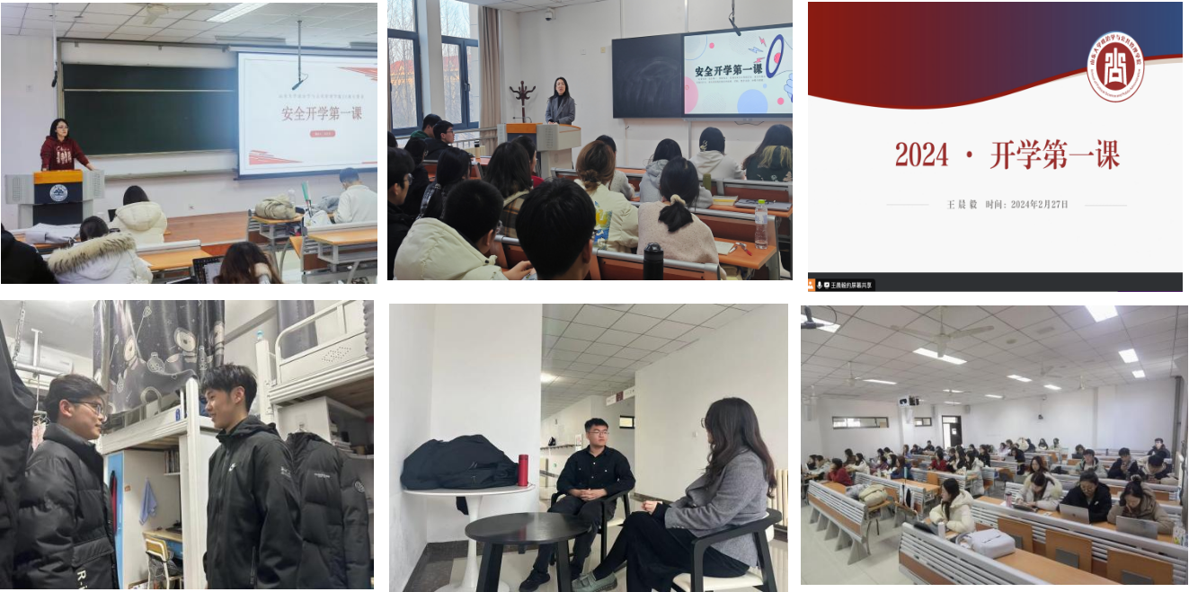 紧盯“返校前、返校中、返校后”三个节点,动态掌握学生数据,切实做到“底数清、情况明”。返校前做到温馨提示,返校中做好安全提醒,返校后通过“进宿舍、进网络、进课堂、进操场”等多种途径,动态了解学生思想动态,帮助学生解决急难愁盼。各年级辅导员以安全开学“第一课”为主题,通过线上线下相结合的形式组织召开新学期主题班会,切实做到人员全覆盖、内容全方面、教育全入心。及时向留学生传达了学校关于安全防范的各类通知要求,提醒同学们注意自身安全。同时,依托班级安全信息员、学生党团骨干、宿舍长等关键群体,密切关注学生因考研失利、就业困难、家庭变故、重大挫折等明显异常情况,“一人一策”保持跟踪关注,确保每一名学生都够做到学在山大、快乐成长。