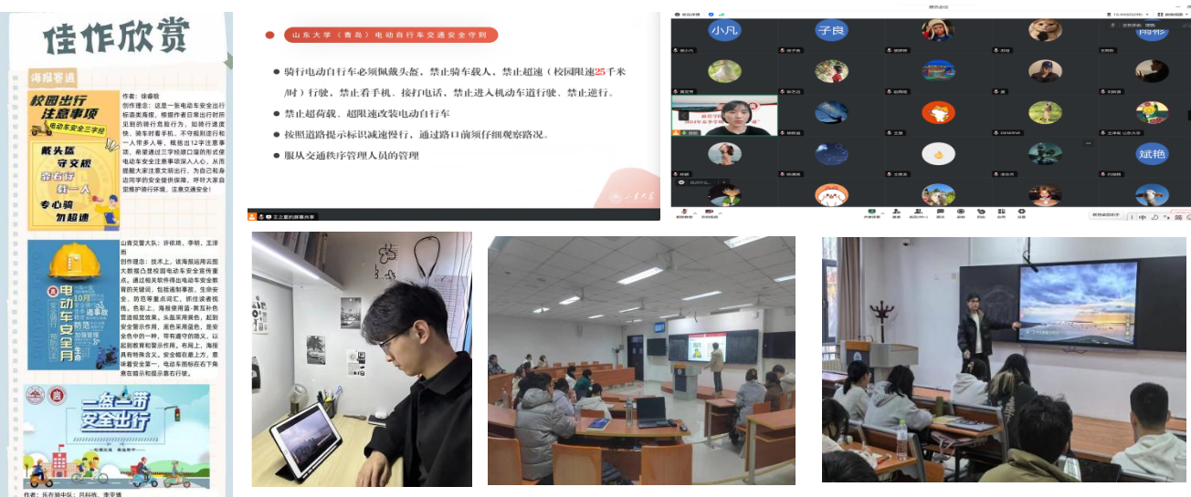 为进一步营造良好的校园安全文化氛围,学院广泛组织开展《澳门网投官方网站电动自行车管理办法(试行)》《电动车安全隐患防范警示提醒》宣讲,做好电动车管理“五个一律”解释工作,结合前期“安全骑行、平安校园”主题活动,进行优秀网络视频作品、设计海报和文创展演工作,引导学生争做校园安全的宣传者、践行者和守护者。组织各年级学生观看《生命重于泰山》《红线》等宣传教育片,进一步了解安全面临的严峻形势,深刻汲取教训,拧紧安全责任这根弦。此外,为进一步拓展宣传范围,学院充分利用校园网、微信进行信息收集反馈,向学生普及安全等知识,同时利用展板、宣传手册等强化线下安全知识宣传,线上线下形成合力,不断提升教育的贴近性、针对性,推动形成“人人讲安全、事事为安全、时时想安全、处处要安全”的良好氛围,努力保障师生安全和校园稳定。