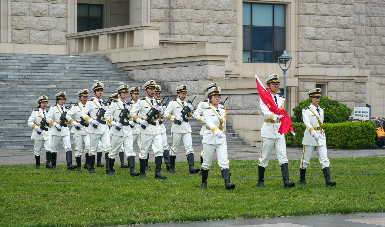 上午7时,升国旗活动正式开始。与会学生整齐列队,肃立广场,目光齐聚中,国旗护卫队迈着坚定步伐,护送五星红旗至升旗台。随着庄严国歌声响起,同学们肃立注目,向国旗行注目礼,鲜艳的五星红旗冉冉升起,迎风飘扬。