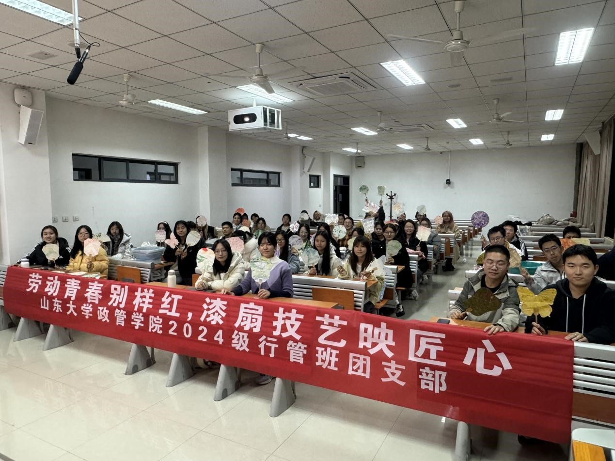 为培育和增强时代新青年的劳动意识,树立积极健康的劳动价值观,11月22日下午,澳门网投官方网站2024级行管班团支部在振声苑成功举办“劳动青春别样红,漆扇技艺映匠心”主题团日活动。本次活动由团支书周俊熹、宣传委员李姿霖主持,24级行管班全体同学共同参与。