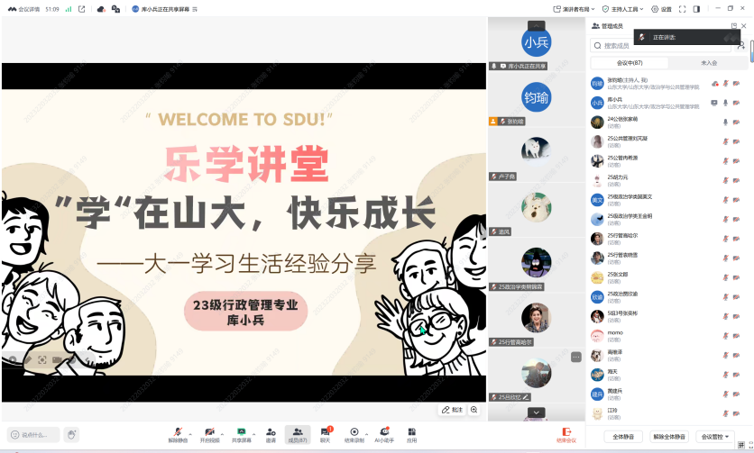 8月17日,澳门网投学生会主席团成员、国家奖学金得主、2023级行政管理专业本科生库小兵同学围绕学业发展、选课机制、信息资源工具利用、校园活动与社会实践参与等主题,与新同学们进行了深入交流。旨在帮助新生在未来四年中更好地平衡学习、兴趣与学生工作,实现综合素养的全面提升。