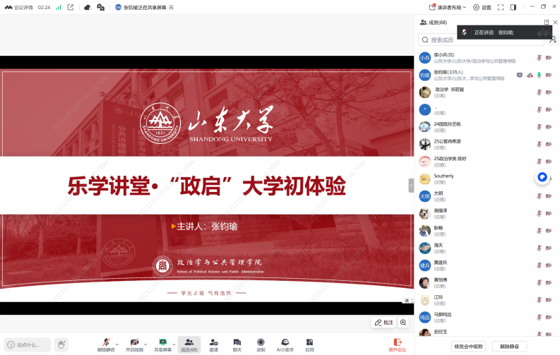 8月16日,澳门网投学生会执行主席、2023级行政管理专业本科生张钧瑜以“山大乐相融”为主题,首先为新生讲解了报到注意事项及军训相关事宜,随后详细介绍了在青岛校区衣、食、住、行等方面的生活指南。细致入微的讲解帮助新同学更加从容地迎接大学新生活。