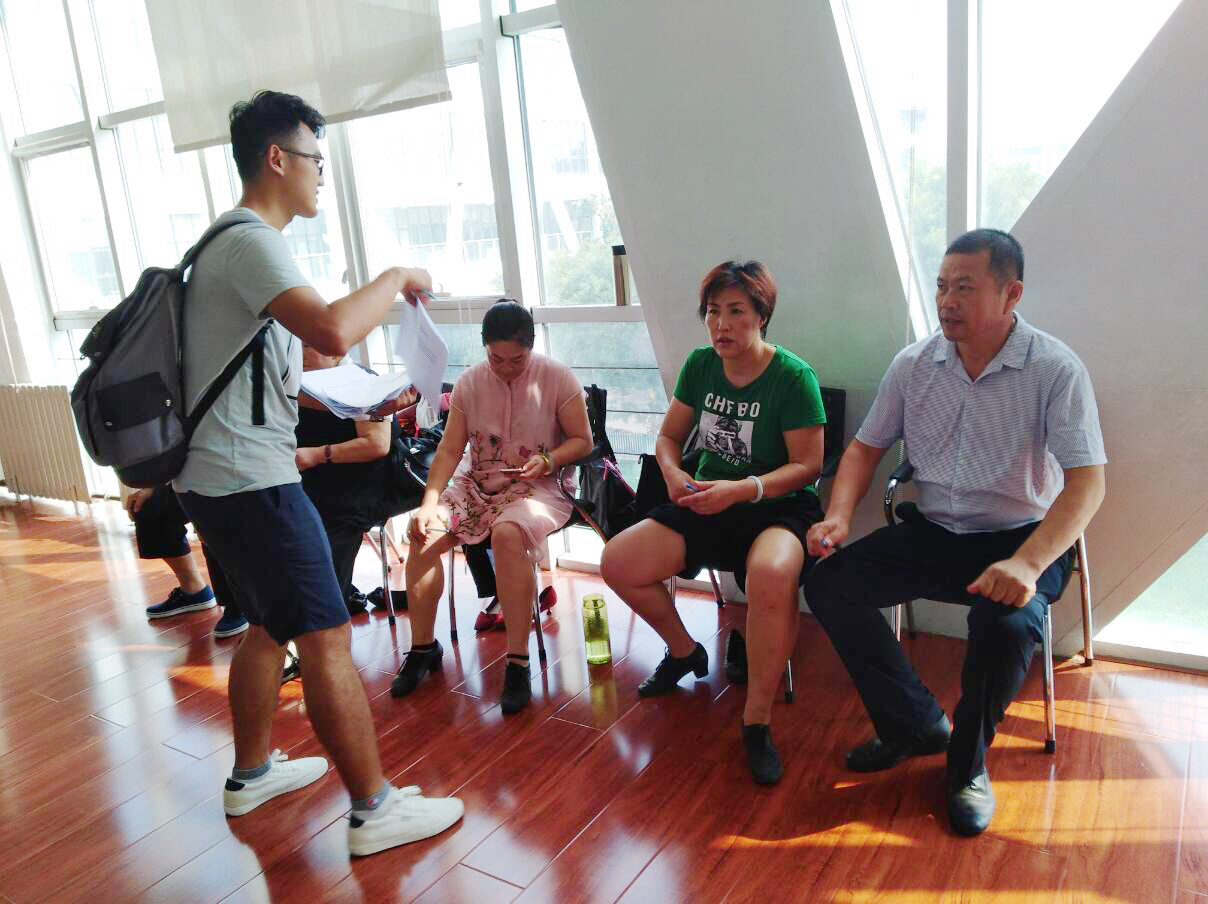 上午十点,调研团成员们到达了城阳区老年大学,大家首先来到办公室和王主任见面,再次说明了本次社会实践的具体事由。十点半,上午的课程结束,成员们原计划利用这段时间发放问卷,但是由于临近午餐时间,老人们大都急于赶回家,调研团未能成功发放问卷。经过商讨,成员们一致决定放弃中午这一时间段,等到下午的课间休息时间再尝试发放问卷。