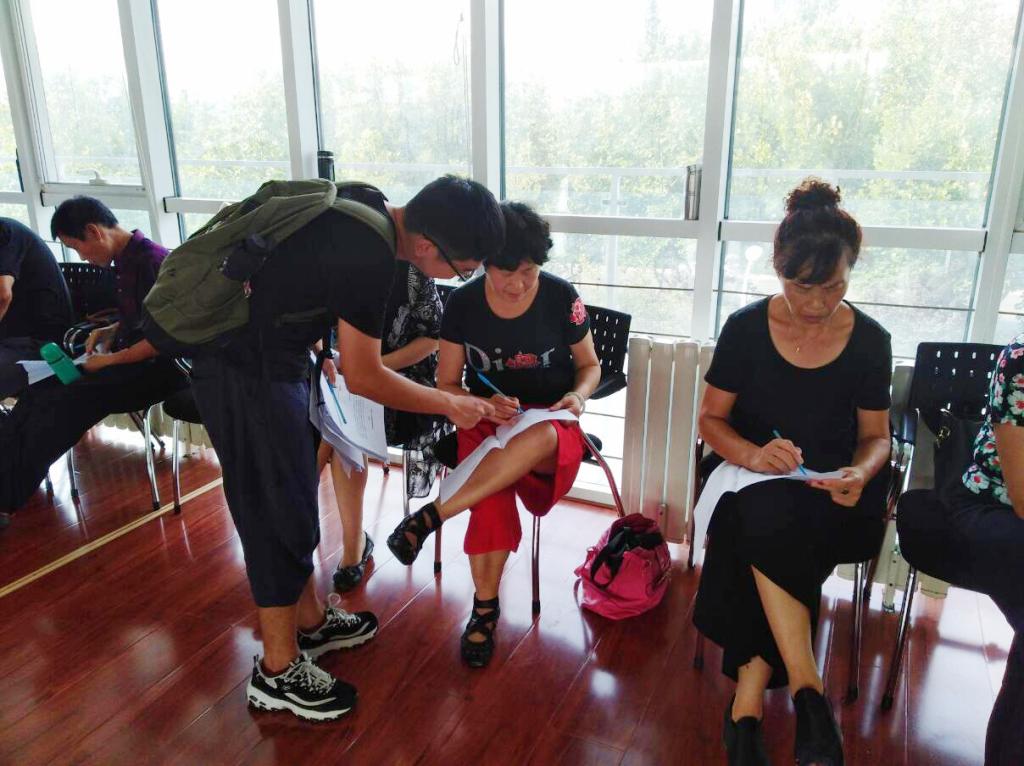 下午一点半,老年大学下午的课程正式开始。由于下午的课程未将老人们分成小班级上课,老年学员相对集中,调研团成员在与老师进行沟通后,决定利用这一课间发放问卷。下午两点和两点半这两个时间段,调研团成员分头行动,分别在一个声乐班、两个舞蹈班、一个素描班和一个古筝班成功发放了问卷。