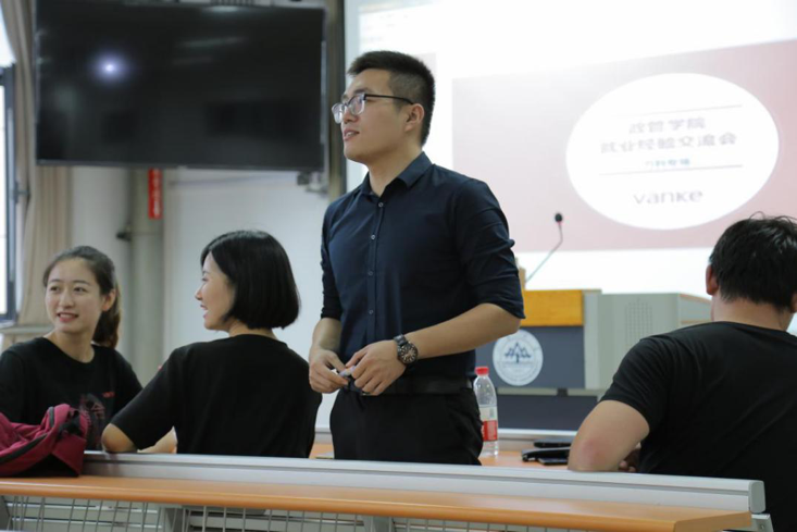 9月16日,澳门网投官方网站就业经验交流会万科专场在青岛校区振声苑e201教室顺利举办。来自万科集团的4位特邀嘉宾就不同方面的就业问题与同学们进行了交流。