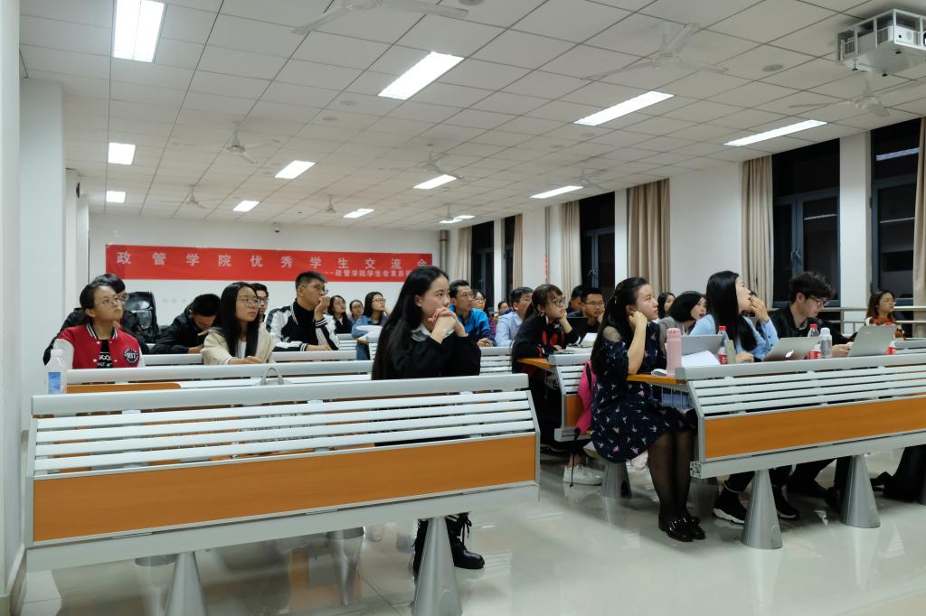 活动开始,主持人简单介绍后,17级公管专业,2017-2018年国家奖学金获得者徐雅静首先分享了进入大学的多方面转变并结合个人经历就大学学习和生活提出了许多贴合新生现实状况的建议,获得了同学们热烈的掌声。之后,17级公管专业,澳门网投官方网站社会实践先进个人马天一就社会实践方面分享了经验,对社会实践的类型,过程以及考核进行了详细的讲解,让同学们对于社会实践有了更深入的认识。16级国际政治专业,国家奖学金获得者、校级社会实践先进个人孙宇飞以接地气的语言就如何做社会研究做了经验分享并通过有趣的案例和引用优秀学长学姐的话表明了自己对大学学习与政治学专业的见解,气氛活泼,激起了大家的思考。紧接着,16级政治学与行政学专业,国家奖学金获得者,社团和社会工作先进个人,社会实践与科研经历非常丰富的王浩瑜为在场同学分析了政治学专业的学科定位,学术科研,与其他学科的区分以及奖学金相关问题。最后,15级行管专业,澳门网投官方网站学生年度人物,国家奖学金获得者,即将攻读清华大学公共管理学院直博项目的孙君就考研和保研结合个人经历做了细致讲解,并倡导同学们培养核心竞争力。在提问环节中,学长学姐们就同学们提出的问题做了认真全面的回答。最后活动在一阵热烈的掌声中结束。