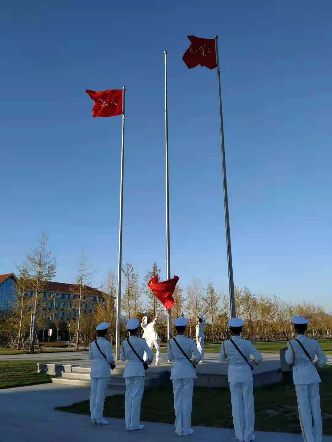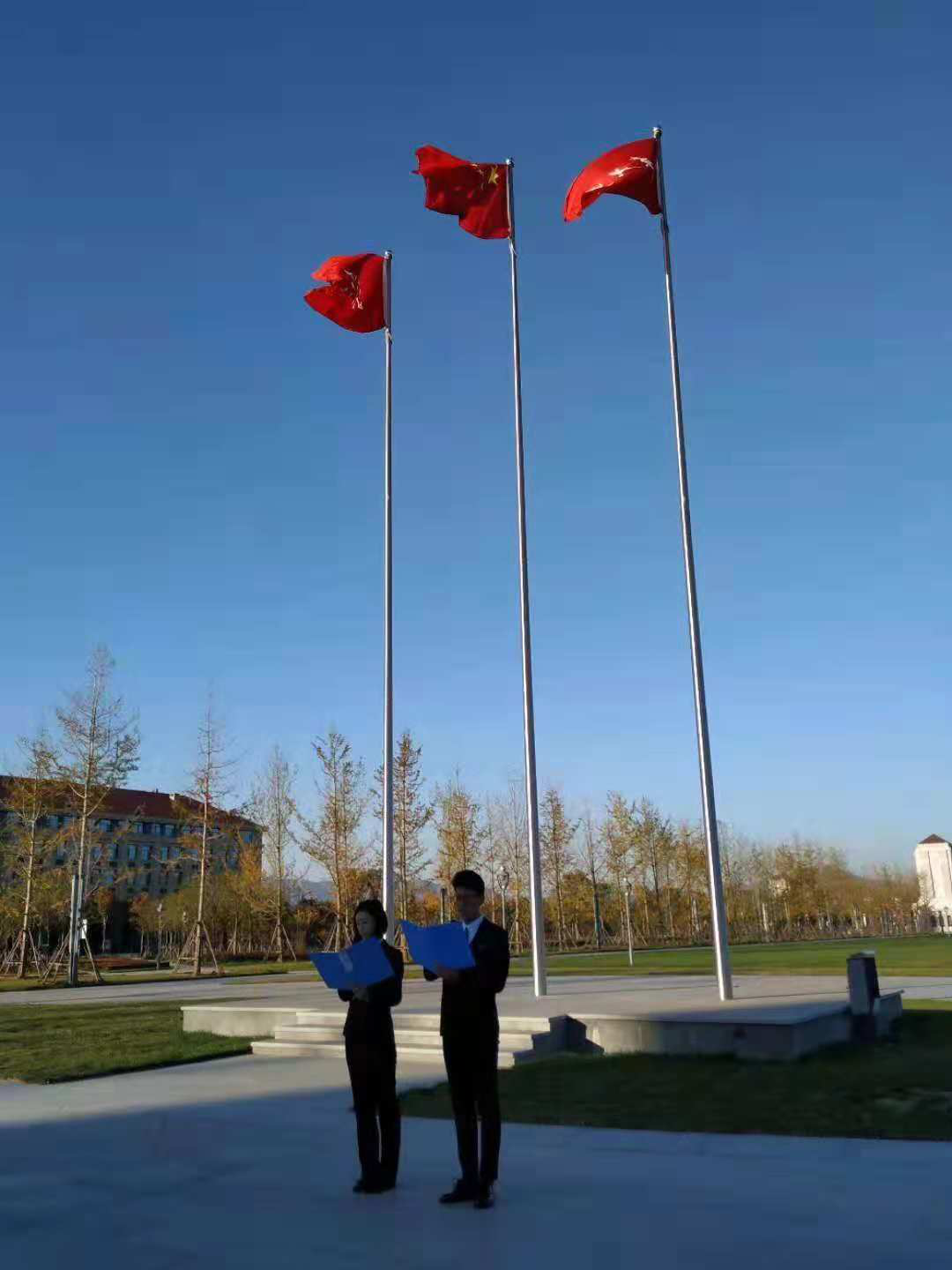 迎着温暖的朝阳,披着清爽的秋风,2018级政治学本科班的同学们早早地集合在育贤广场,静穆、肃立,等待着升旗仪式的开始。
