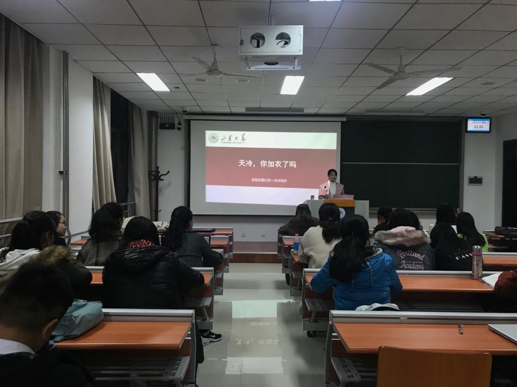 晚上20:30,班会正式开始。主持人简单介绍后,班长孔维彦首先向大家进行安全知识普及,通过安全知识讲解、与同学们的互动,向同学们分享了在宿舍等地做好消防安全工作的细节,让同学们学习了消防安全知识,气氛热烈,获得同学们的一致好评。之后,生活委员孙立双就如何预防感冒、天气的变化以及生活中需要注意的其他事件进行分享。