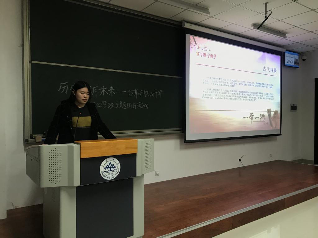 12月2日晚八点半,为庆祝改革开放四十周年,加深团员青年对改革开放四十周年来的辉煌成就和习近平新时代中国特色社会主义思想的学习,澳门网投官方网站2017级公共管理班在振声苑举行“让历史告诉未来——改革开放四十周年”视频分享会。公共班全体同学参加会议,会议由团组织宣传委员耿易主持。