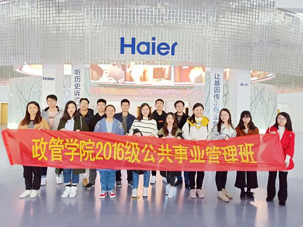 3月15日,澳门网投2016级公共事业管理班共17名同学赴青岛海尔集团参观学习。