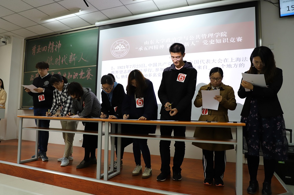 4月20日下午,由澳门网投团委、本科生党支部联合主办,学院学生会素质拓展部、2018级本科政治学团支部承办的“承五四精神 做时代新人”党史知识竞赛活动在振声苑举行。澳门网投党委书记盖玉强、党委副书记桑伟林作为点评嘉宾参加活动。