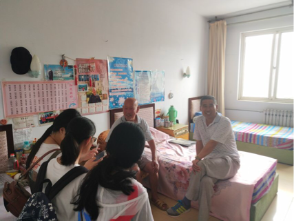 29日,团队成员走访了崂山区老年公寓。崂山区老年公寓规模大,生活环境和条件俱佳,老年人多,护工配置合理。团队与几位老人沟通交流,了解老人对于志愿服务的需求和看法。