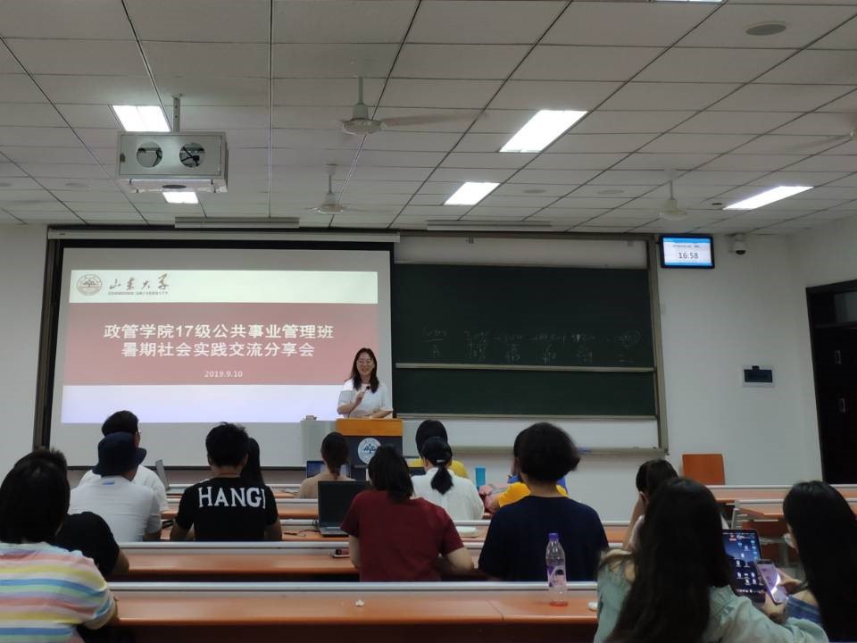 9月10日下午,澳门网投2017级公共事业管理班暑期社会实践交流分享会在振声苑E302教室举行。本次交流会主要由申报社会实践优秀等级的同学进行展示,整场氛围热烈而轻松。