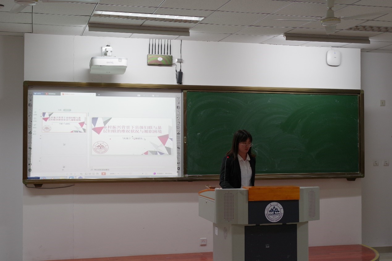 首先,主持人介绍本次答辩指导老师和比赛规则,本次结项答辩分为PPT展示和老师点评两部分。答辩正式开始,答辩人通过PPT展示的形式充分展现了研究背景,调研内容,案例分析,调研成果等。答辩团队聚焦城中村,智慧农业,土地流转,乡村教师,社区减负等多个社会热点,并提出自己的看法和理解。