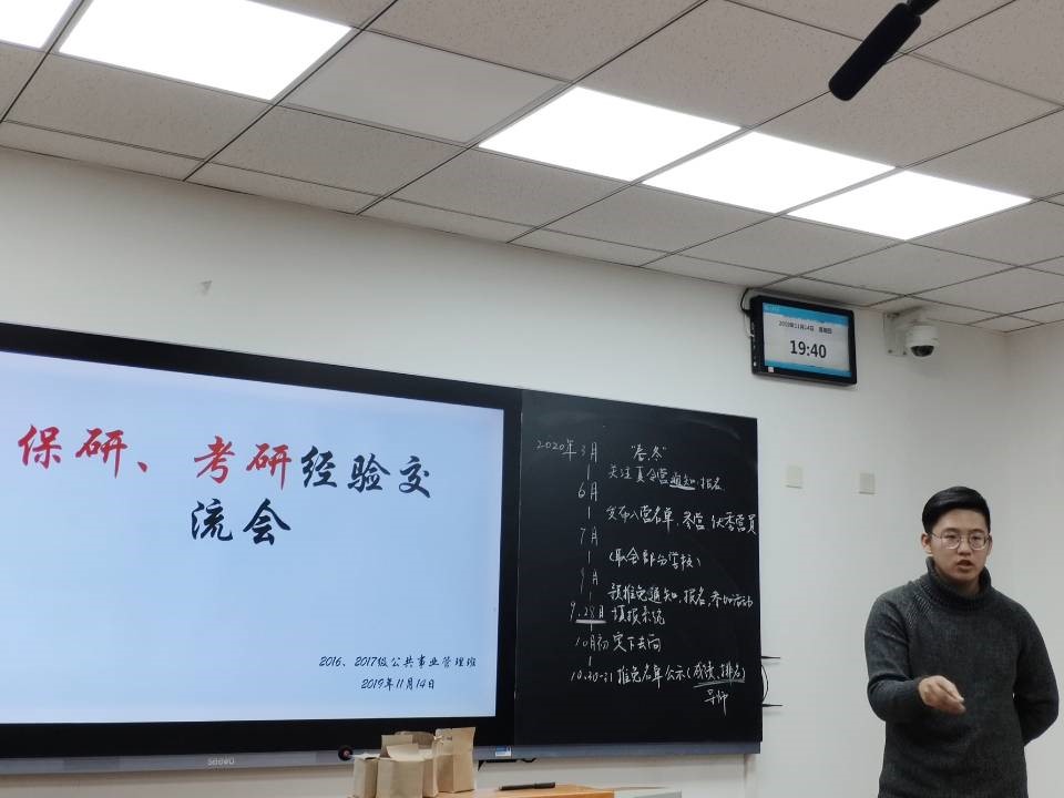 2019年11月14日,澳门网投2017级公共事业管理班保研考研经验交流会在振声苑E207成功举办。本次交流会到场的嘉宾有:魏思齐、刘宏羽、程奕嘉、郑涵、李梦凡、刘慧,六位来自澳门网投2016级公共事业管理班的优秀学长学姐。