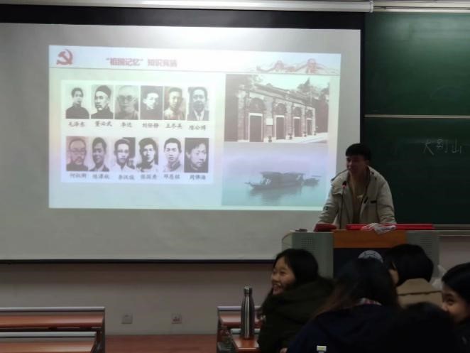 第三部分活动是看图猜谜、猜红色谜语活动,通过这些丰富的形式,由团支书带领,大家一起重温了“祖国记忆”。竞猜环节中,同学们积极回答问题,气氛高涨,每个问题回答者也都会进行答案的讲解,使在场同学都能在参与的同时温习知识。