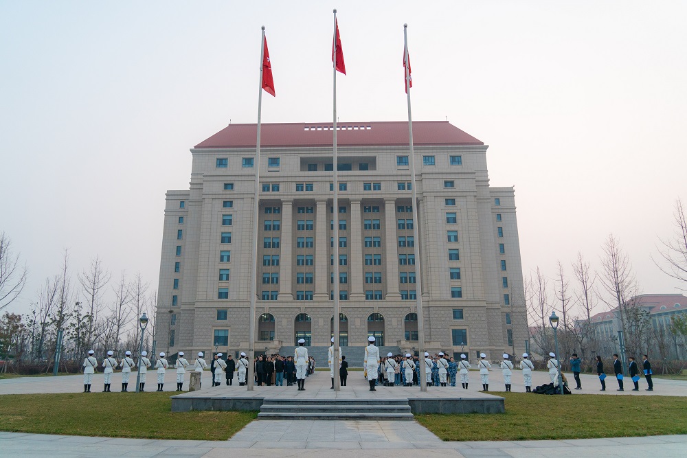 澳门网投官方网站(青岛)学工部、政工处、澳门网投官方网站相关负责人参加升旗仪式。