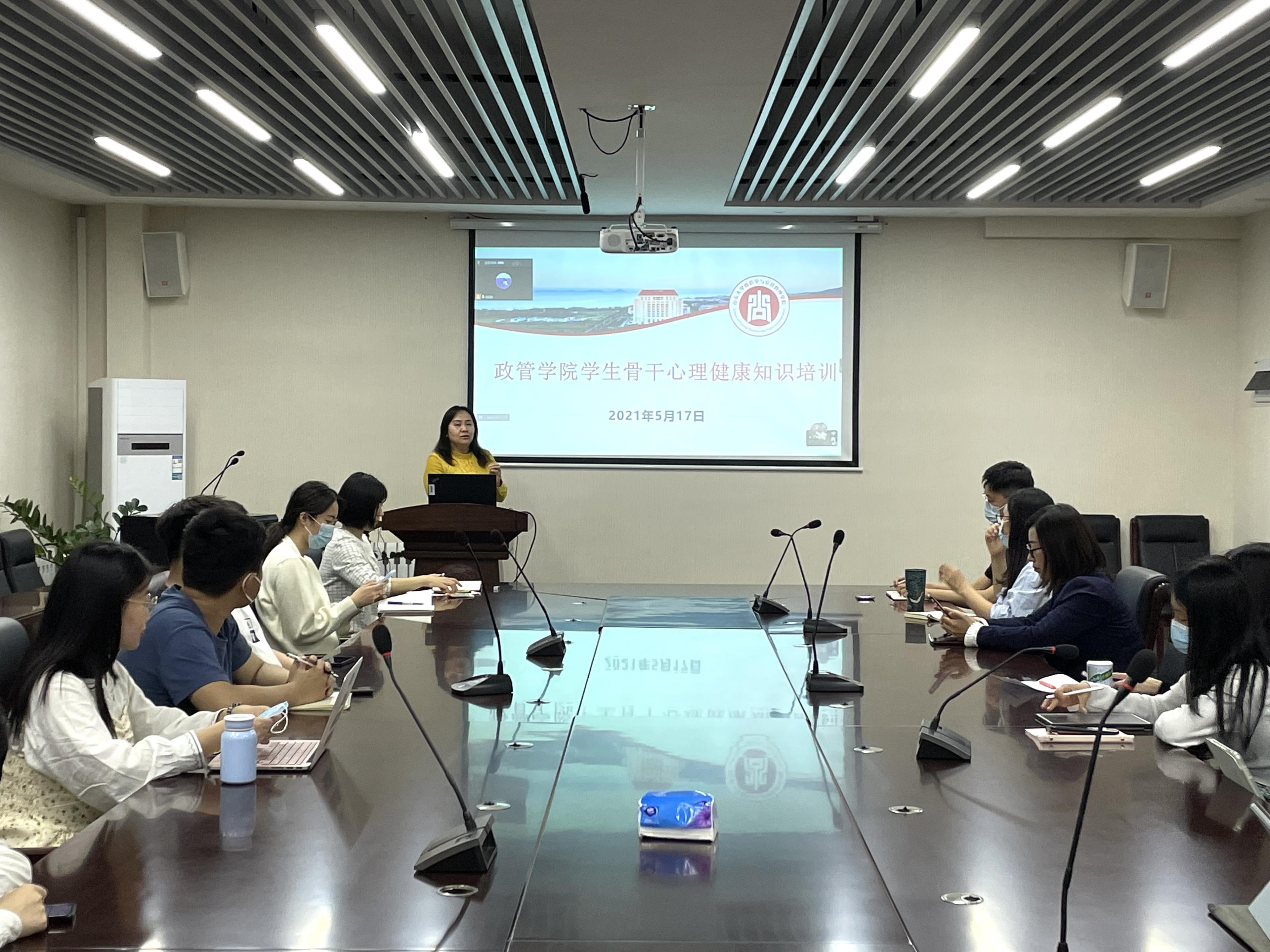 5月17日晚,澳门网投于华岗苑南楼436会议室开展学生骨干心理健康知识培训讲座。青岛校区学工部副部长李娟教授担任主讲,讲座面向班级心理委员和宿舍舍长,采取线上线下相结合的方式展开。院党委副书记马桂兰主持会议,院全体辅导员参与其中。