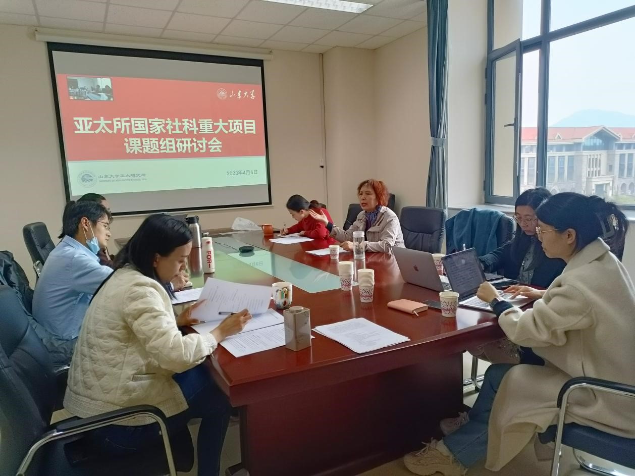 4月6日下午,澳门网投官方网站亚太研究所国家社科专项基金课题组第三次集体研讨会在青岛校区华岗苑南楼举行。课题组首席专家、亚太研究所所长杨鲁慧教授主持会议,子课题负责人、亚太研究所副所长赵玙佳副教授、副所长钟诚副教授、亚太地区环境与中国周边外交研究中心主任李昕蕾教授和副主任赵婷副教授、亚太经济贸易合作研究中心主任张岩副教授、亚太大国关系与地区安全研究中心主任王鹏权副教授、李国辉博士参加会议。