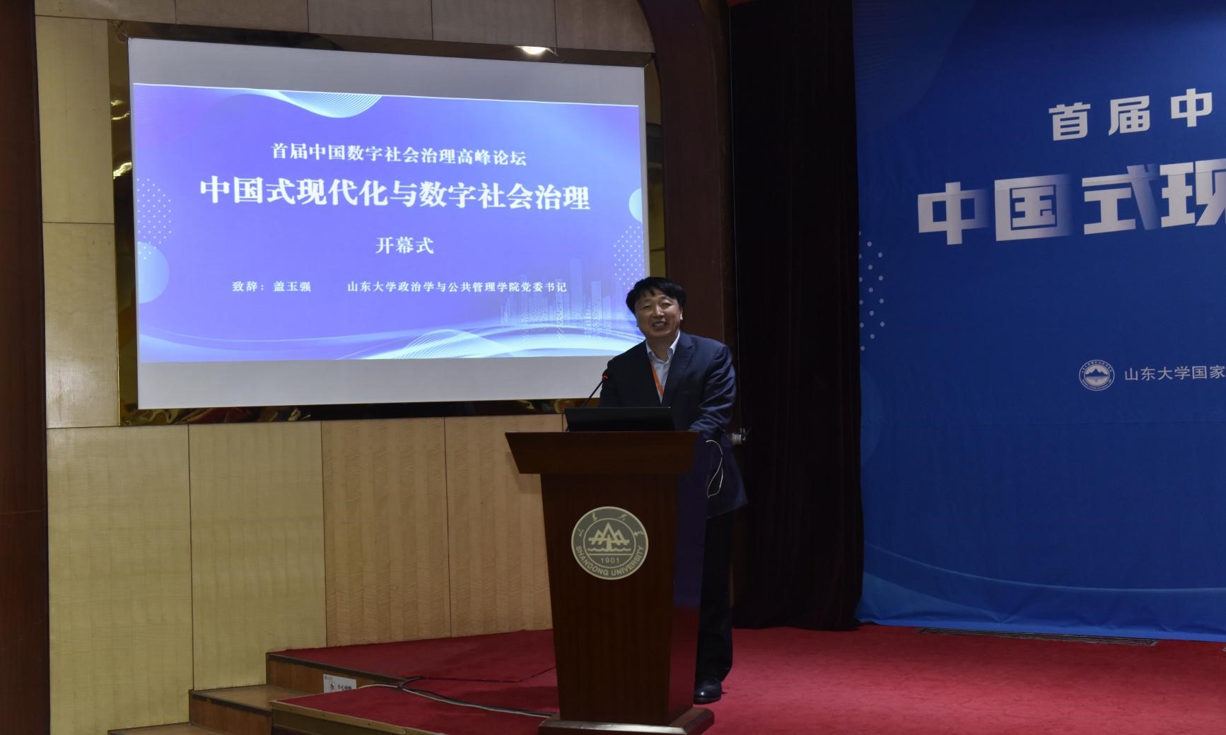 澳门网投官方网站校长助理、国家治理研究院常务副院长曹现强,澳门网投官方网站党委书记盖玉强出席开幕式并致辞。曹现强简要介绍了澳门网投官方网站的学术发展概况和国家治理研究院基本情况,指出作为数字中国战略的重要组成部分,数字社会战略的贯彻落实至关重要,对社会效能的提升有重大影响。为进一步提升数字社会治理能力和水平,充分发挥数字技术在社会治理中的关键作用,亟需学界、政府部门、产业部门的共同努力,这也是本次论坛举办的初心。