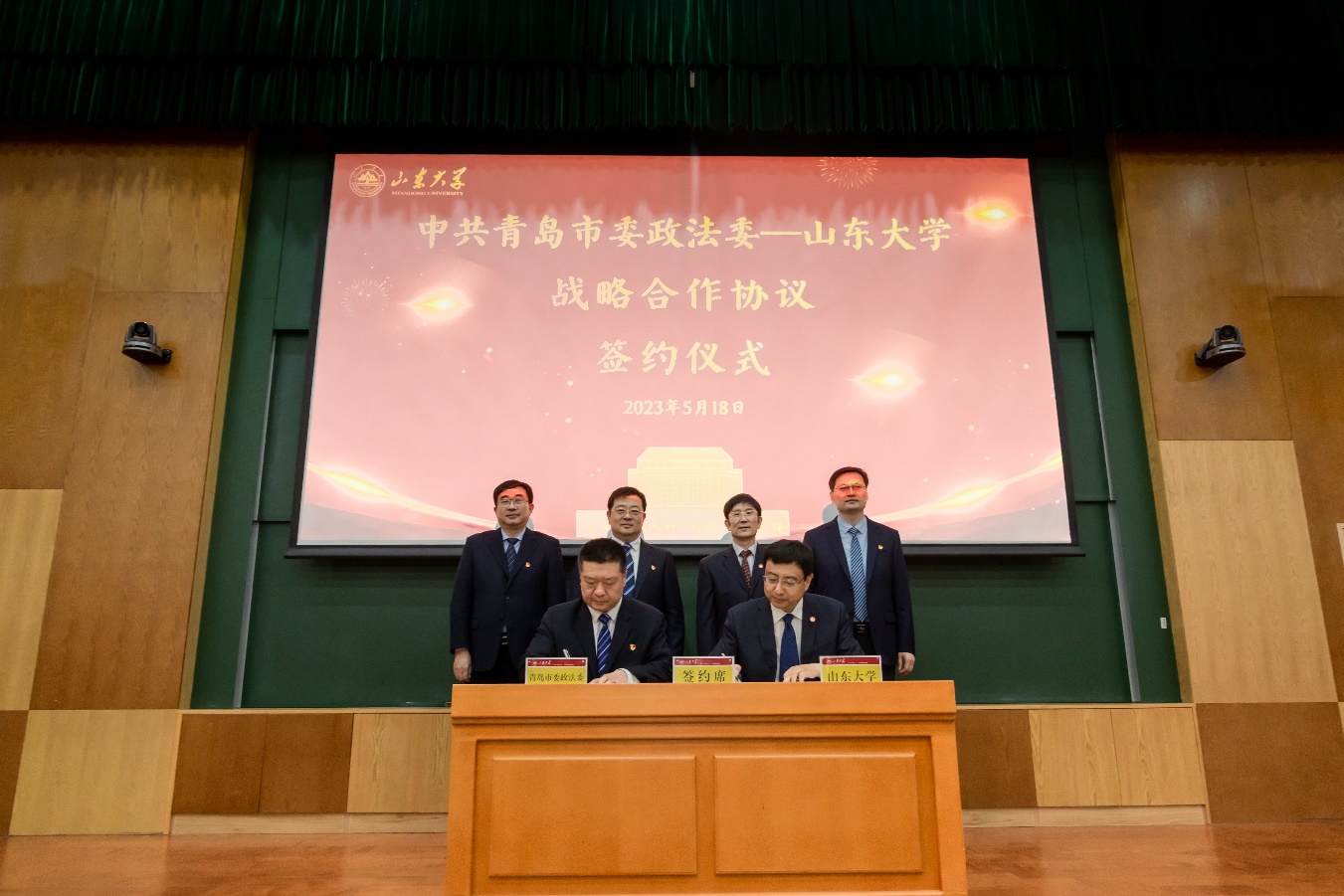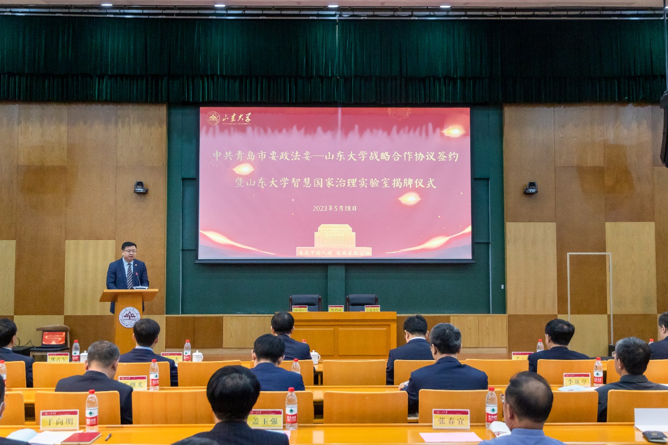 5月18日,中共青岛市委政法委—澳门网投官方网站战略合作协议签约暨澳门网投官方网站智慧国家治理实验室揭牌仪式在青岛校区举行,青岛市委常委、政法委书记程德智,澳门网投官方网站副校长、青岛校区校长韩圣浩,青岛市委教育工委常务副书记、市教育局党组书记、局长姜元韶,即墨区委副书记、区长孙杰,市委政法委副书记江志浩,澳门网投官方网站校长助理、青岛校区党工委书记邢占军等出席仪式。澳门网投官方网站常务副院长、党委副书记马奔主持仪式。