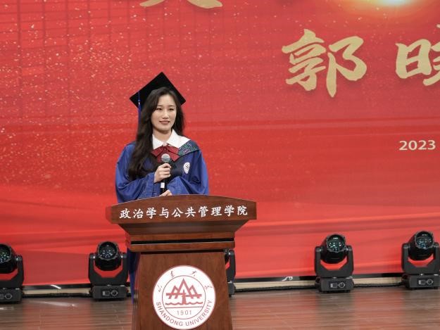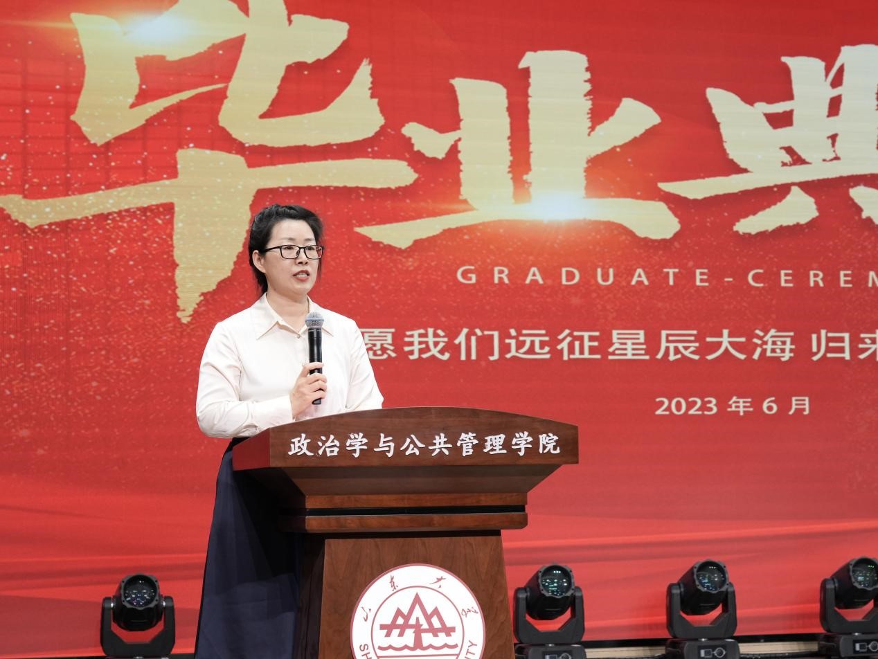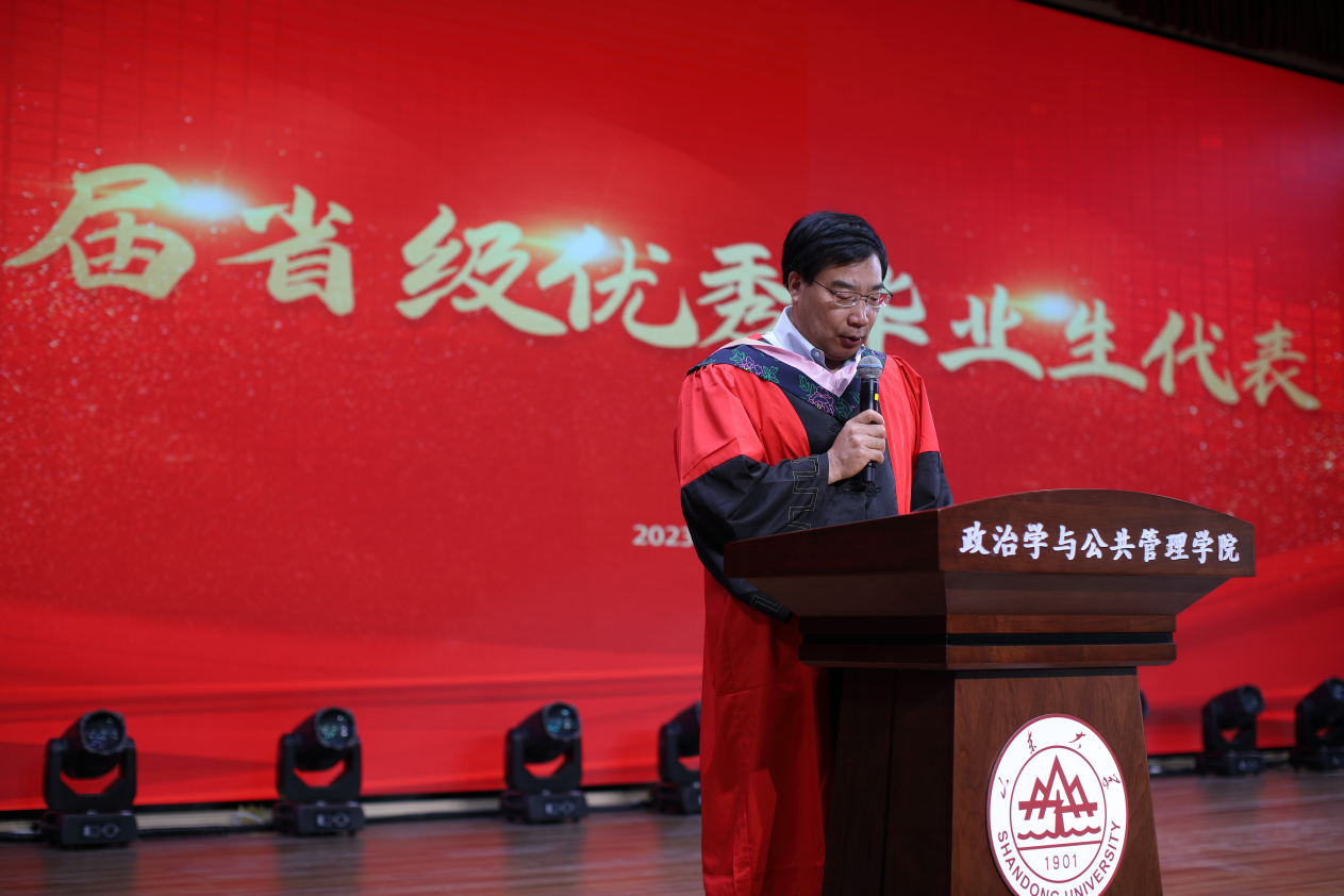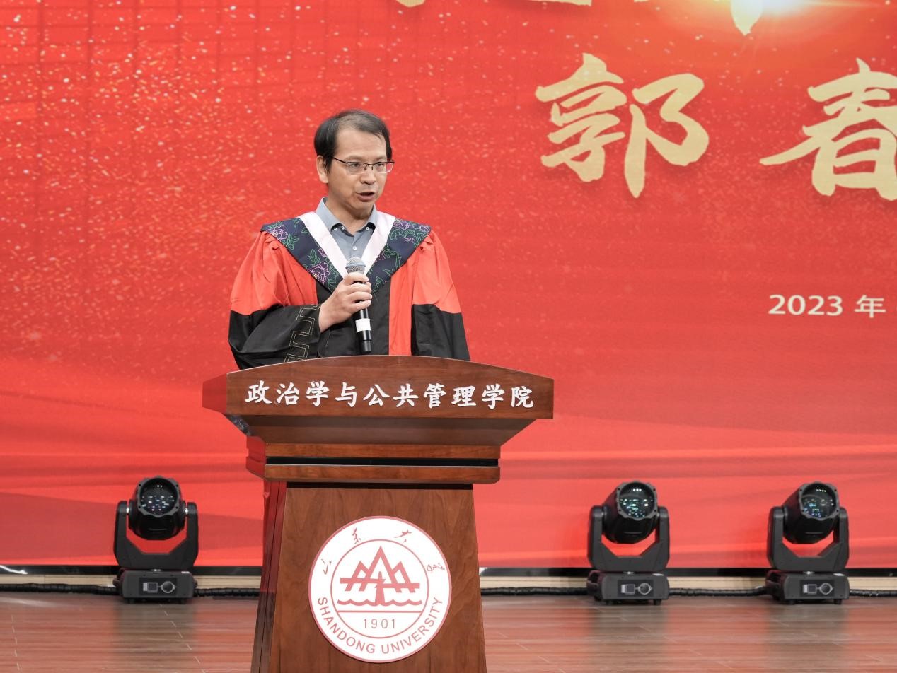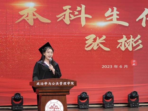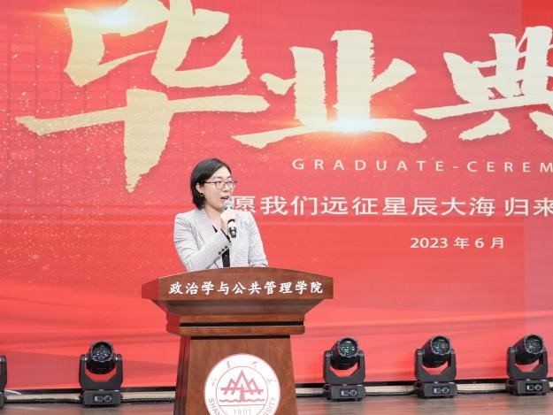 在庄严的《中华人民共和国国歌》声中,澳门网投官方网站2023届毕业生毕业典礼暨学位授予仪式拉开帷幕。校友代表、现任教于上海交通大学国际与公共事务学院的苏若林副教授,回顾了在校学习生活的美好时光,向母校表达了由衷感谢并向全体毕业生表达了诚挚祝福。随后本科生代表张彬、硕士研究生代表郭晓慧和刘硕、MPA代表李振茜和博士研究生代表王昭先后发言,表示将牢记母校“学无止境,气有浩然”的校训,不负“知政为公,厚德笃行”的殷切嘱托,到新时代新天地中去施展抱负、建功立业,争当伟大理想的追梦人,争做伟大事业的生力军,让青春在祖国和人民最需要的地方绽放绚丽之花。