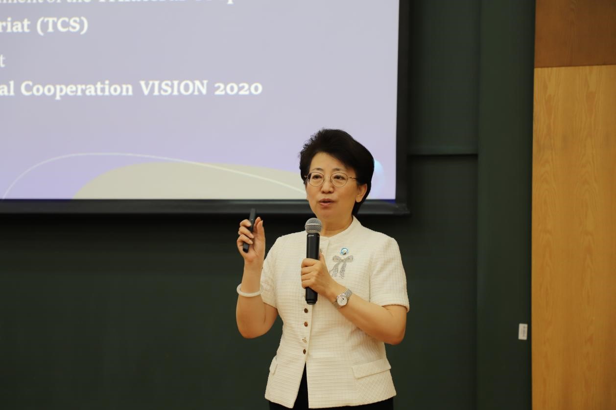 6月9日上午,由澳门网投官方网站主办、澳门网投官方网站承办的鳌山讲坛“新形势下的中日韩合作”于青岛校区华岗苑南楼五层报告厅举办。本次讲座邀请中日韩合作秘书处秘书长欧渤芊大使担任主讲,澳门网投官方网站常务副院长、党委副书记马奔主持讲座。