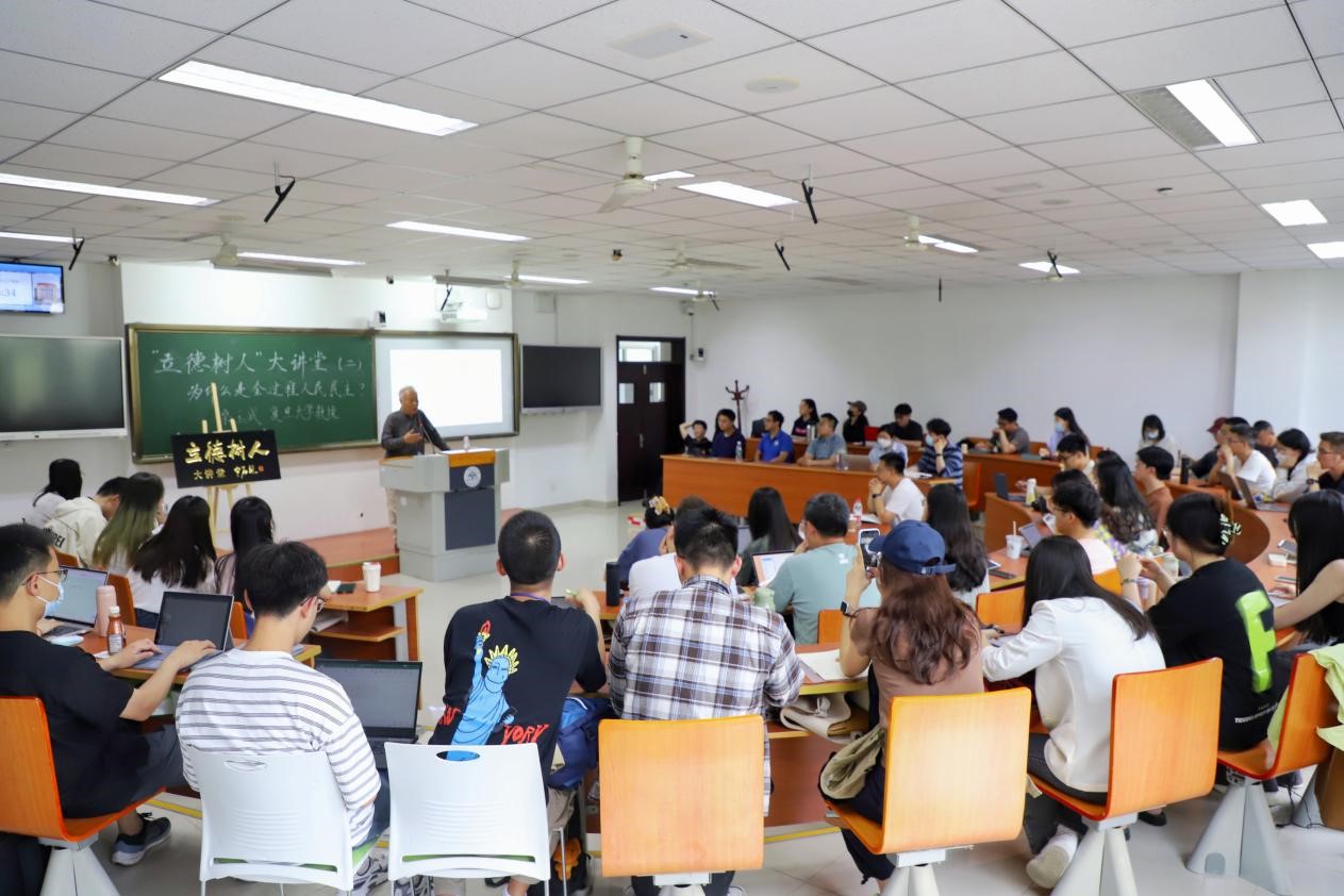 6月12日,澳门网投官方网站新时代美德书屋暨本本优本系列活动之立德树人大讲堂第二期于振声苑举办,讲座主题为“为什么是全过程人民民主”。本次讲座由复旦大学国际关系与公共事务学院教授桑玉成主讲,澳门网投官方网站教授唐睿主持,吸引学院60余名本硕博学生参与。