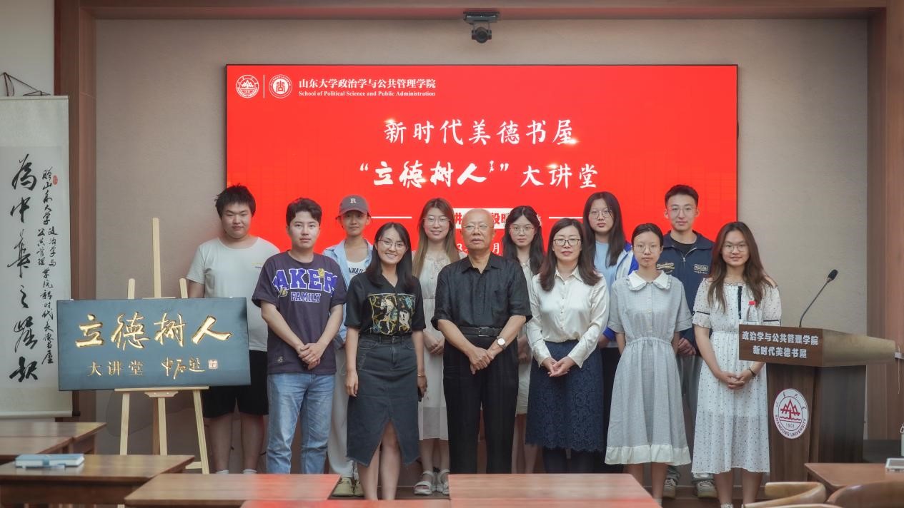 殷教授首先指出,立德树人是教育的根本任务。然后由“其旨远,其辞文”地讲好中国故事引入,向大家讲述了季羡林、任继愈、欧阳中石“齐鲁三贤”在艰难困苦的情况下,立德树人,终其一生为国为民奉献的故事。