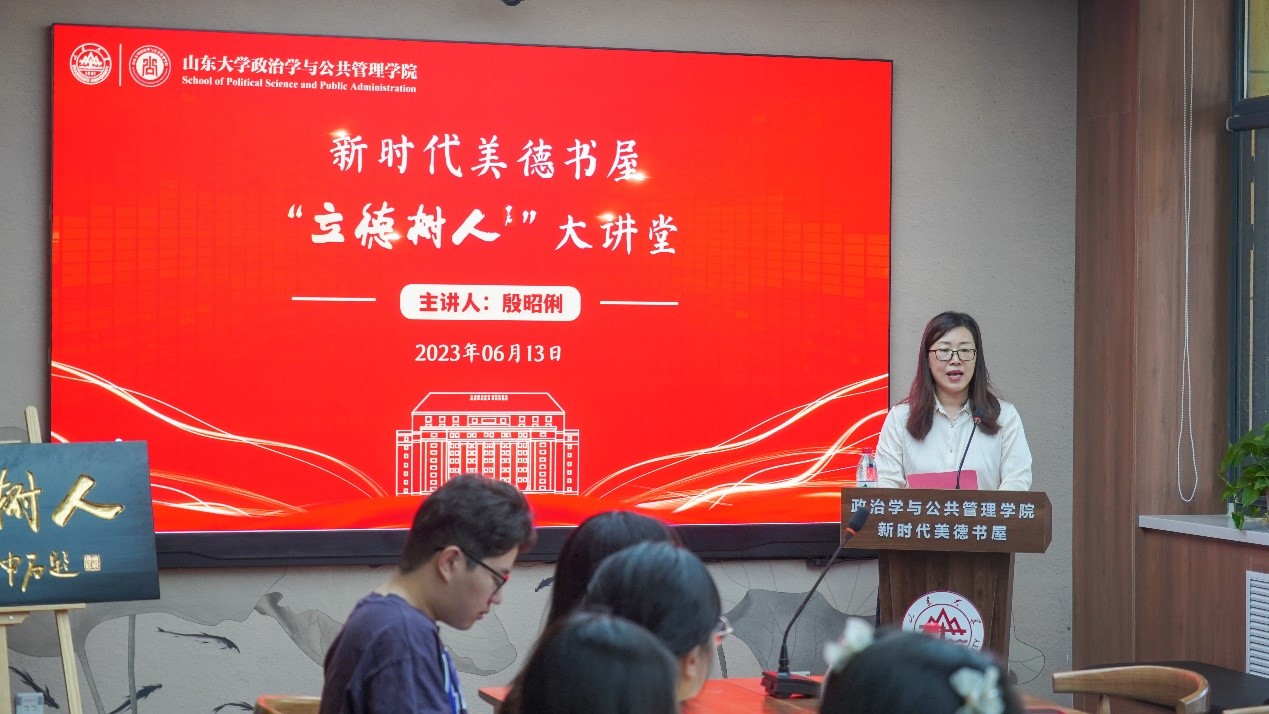 6月13日上午,澳门网投官方网站邀请《红旗画刊》原总编辑助理、中共山东省委党校中华传统美德研究中心主任、首席专家、特聘教授殷昭俐,做客新时代美德书屋系列活动之“立德树人”大讲堂,深情讲述了《“齐鲁三贤”的家国情怀》,聆听报告的老师和同学深获教益。澳门网投党委副书记马桂兰主持报告会。