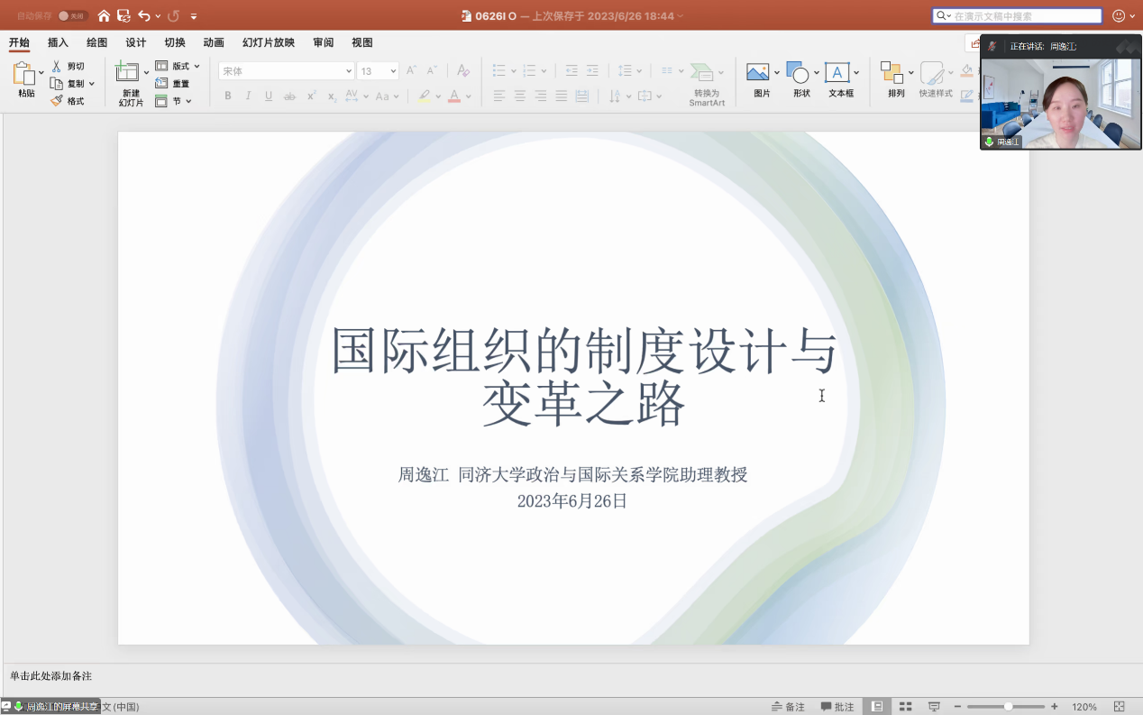 2023年6月26日,山大国政博士生学术工作坊第六期于线上成功举办。同济大学政治与国际关系学院助理教授周逸江以“国际组织的制度设计与变革之路”为题进行了精彩讲座。澳门网投官方网站教授李慧明主持讲座,国际政治专业2022级博士研究生参与交流。