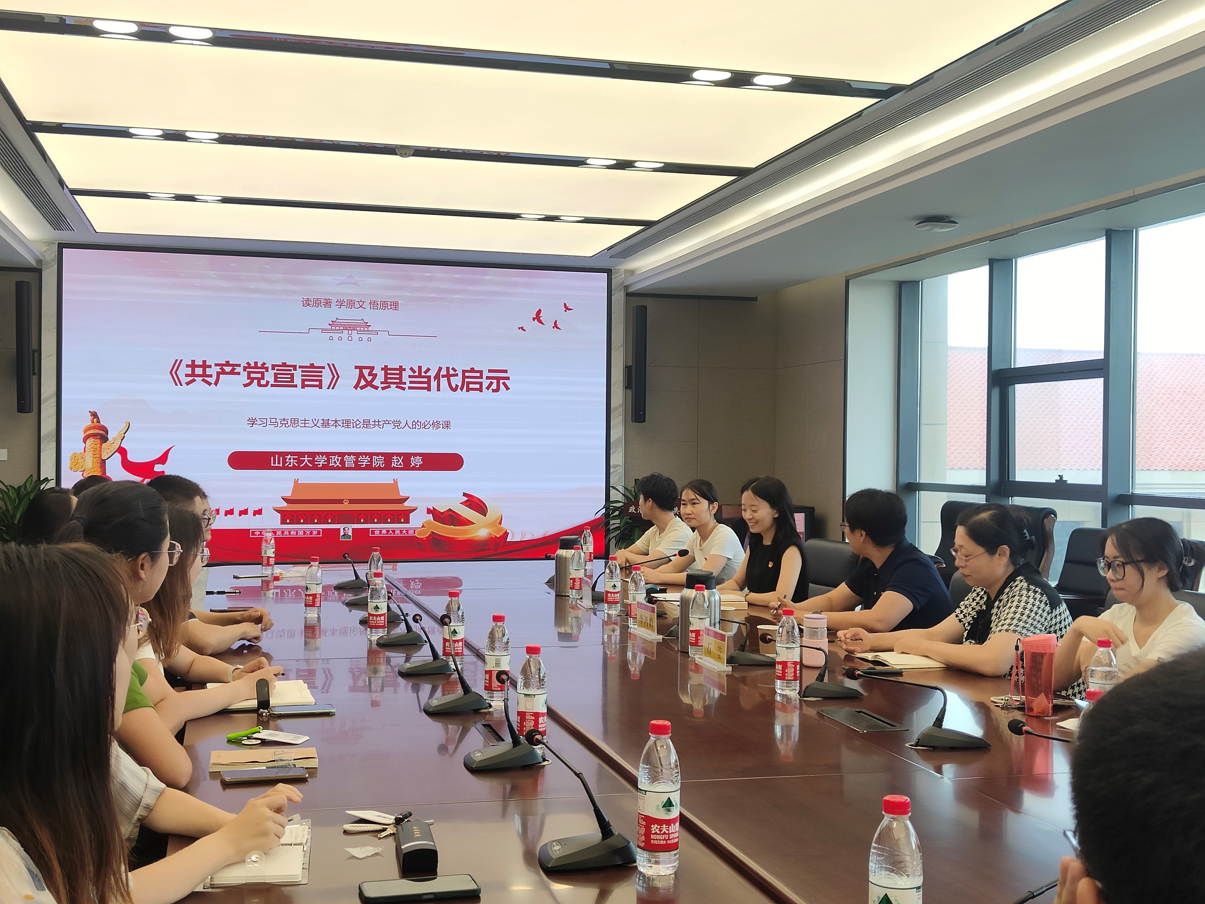 7月3日,为进一步推动学习贯彻习近平新时代中国特色社会主义思想主题教育走深走实,澳门网投官方网站副院长赵婷为管理类硕研第三党支部与政治类硕研第三党支部讲授题为“《共产党宣言》及其当代启示”的主题教育专题党课。学校主题教育第十巡回指导组副组长、信息科学与工程学院党委副书记李鸿娟到会指导,澳门网投官方网站党委副书记石莹参加会议