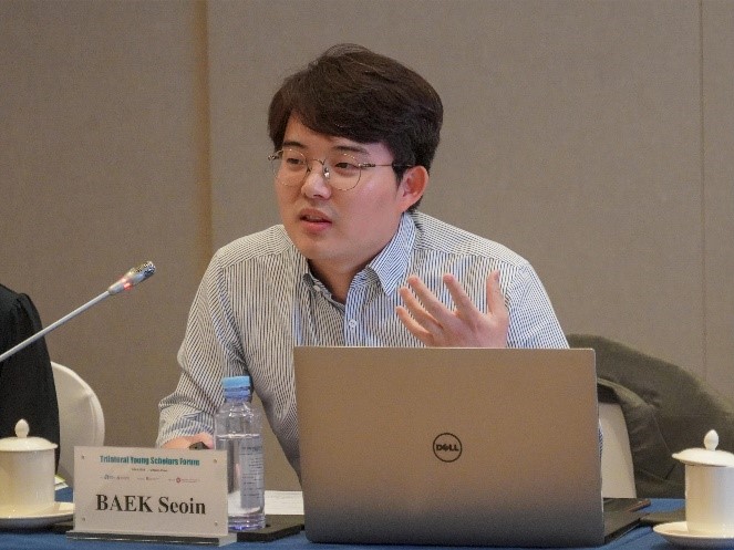 会议第二阶段由成均馆大学李熙玉教授主持。澳门网投官方网站赵玙佳副教授探讨了大国竞争时代东亚一体化的主要障碍和驱动力。汉阳大学白西寅助理教授强调了人工智能对中日韩合作的重要性,倡导加强制度支持以促进该领域合作。横滨国立大学星野尚大从国际相互认知的视角看待财政和金融政策的制定,并对财政持续稳定发展提出了建议。明治大学相原勇希认为新冠疫情影响了中日韩人民间的相互认知,而通过促进不同年龄阶段的各代人互动,可以增强三国作为东亚国家的意识。