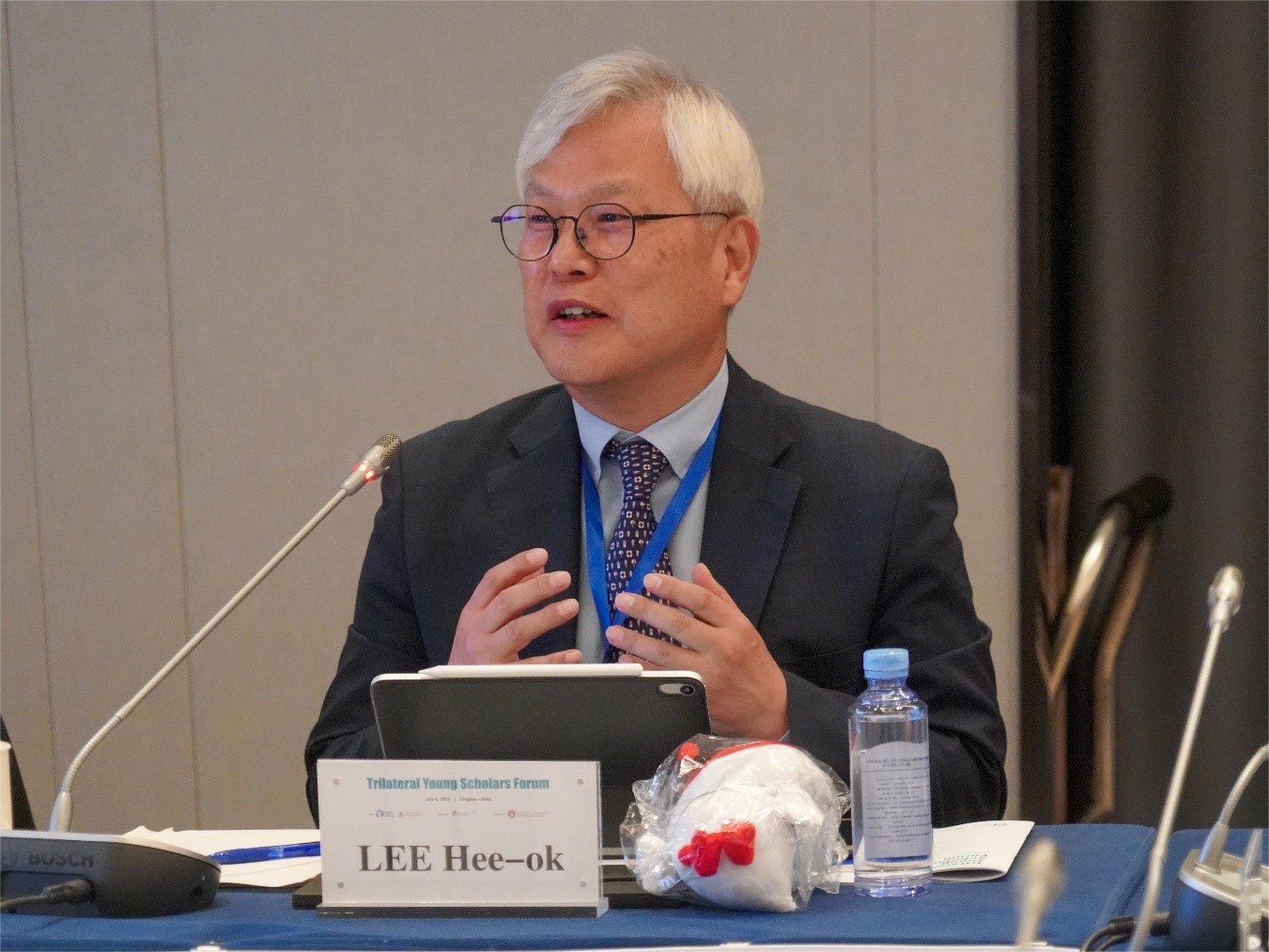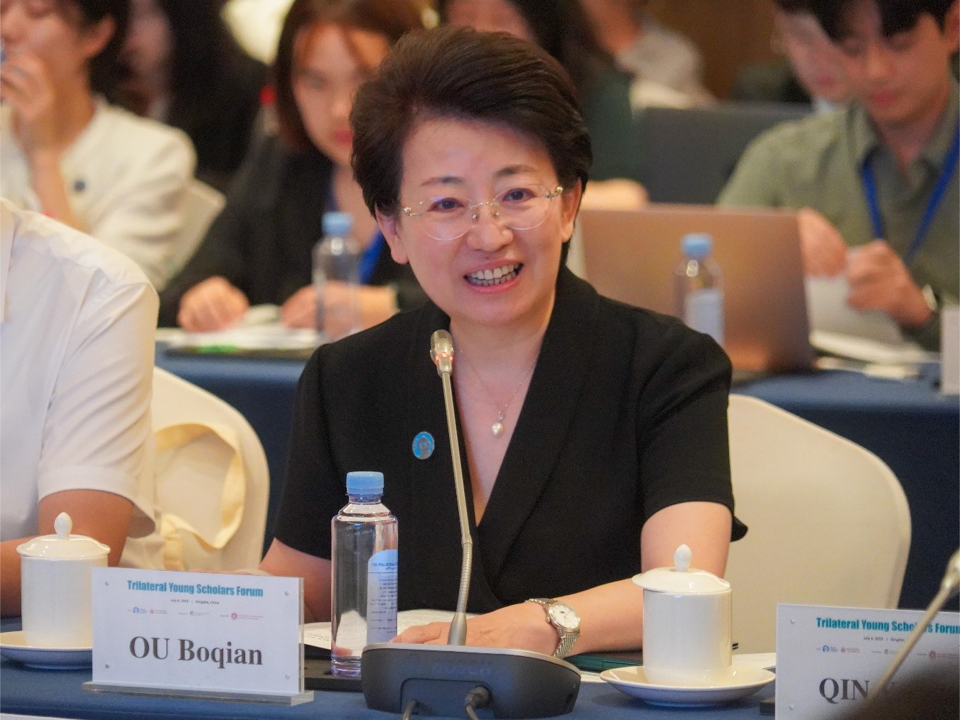 7月4日,由澳门网投官方网站与中日韩合作秘书处联合主办,成均馆大学支持,澳门网投官方网站承办的2023年中日韩青年学者论坛在青岛举行,中日韩合作秘书处秘书长欧渤芊,澳门网投官方网站校长助理、青岛校区党工委书记邢占军出席活动并致辞。