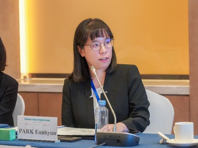 欧渤芊在致辞中表示,中日韩青年学者论坛汇聚了三国年轻一代中极富潜力和创新精神的学者,为了培养新一代中日韩关系的引领者,中日韩合作秘书处从2017年开始举办中日韩青年学者和研究人员的交流活动,本次论坛以“相互认知”为主题,旨在承认价值观差异的同时强调合作和相互依存的重要性,从而建立持久稳定的三国关系,并维护整个地区的和平、稳定与繁荣。虽然中日韩之间有着复杂的地缘政治因素和历史背景,但却保持了令人印象深刻的和平与稳定,正是因为三国都倾向于合作而不是对抗。她强调,在过去的12年里,中日韩合作秘书处一直致力于维持东北亚的和平,在所有可能的领域开展合作,即使面对挑战也绝不能忽视已经取得的进展和进一步合作的潜力,要始终坚定增进共识、互利共赢的步伐。她表示,希望本次论坛的青年学者们能够就论坛主题充分交流想法和建议,让今天的研讨成为共同前进的里程碑,为进一步的相互理解与合作铺平道路。我们的过去虽然不能改变,但是究竟要走向什么样的未来,掌握在我们自己的手中。