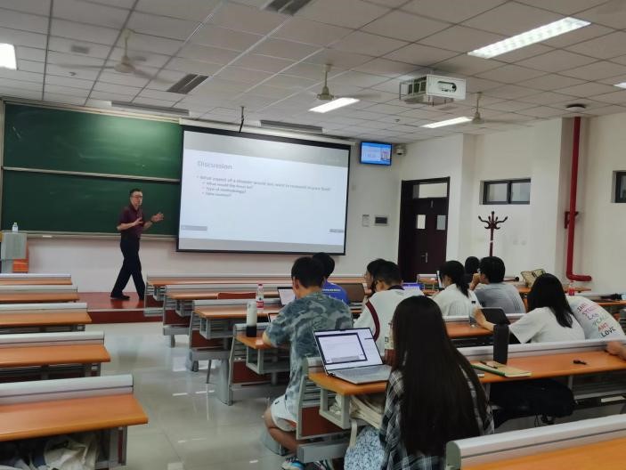 澳门网投官方网站2023年暑期学校《21世纪减防灾与挑战应对》于7月中旬在青岛校区成功举行。应澳门网投官方网站韩自强教授邀请,美国哥伦比亚大学美国应急准备研究中心主任Jeffrey Schlegelmilch教授担任此次课程的主讲教师。课程采用“线上+线下”的授课模式,吸引了来自澳门网投官方网站各个专业五十余名学生报名参与。