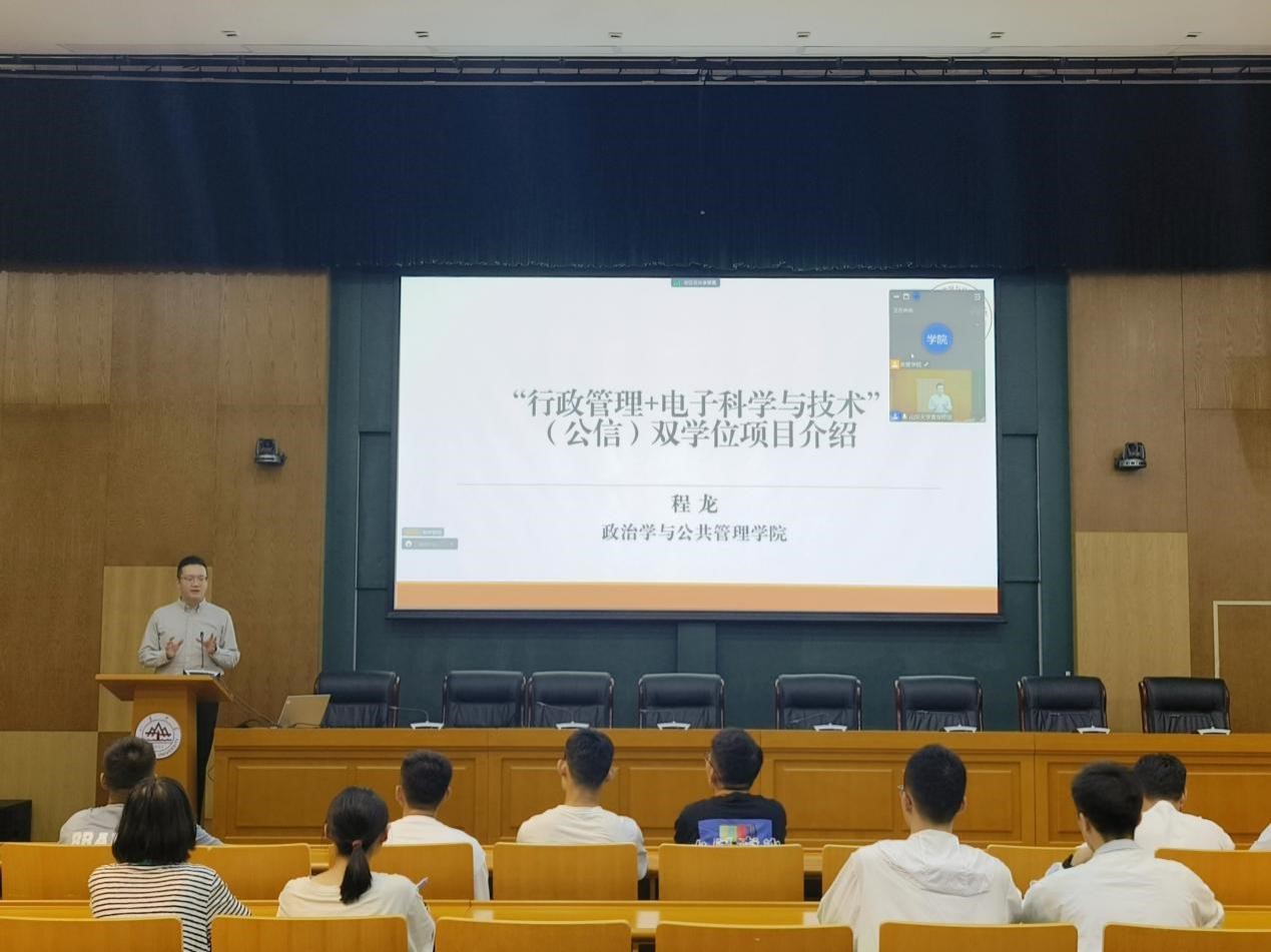 9月6日晚,“行政管理+电子科学与技术双学位”宣讲会于青岛校区华岗苑南楼五楼报告厅及兴隆山校区兴隆山群楼C座3102d同步召开。本次宣讲会采取线上线下相结合的形式,济南校区由澳门网投官方网站楼苏萍老师主讲,青岛校区由澳门网投官方网站程龙以及信息学院栗华两位老师主讲,澳门网投教务秘书及公信班学生代表参与答疑和交流。