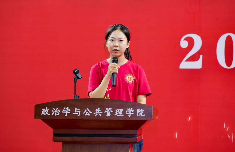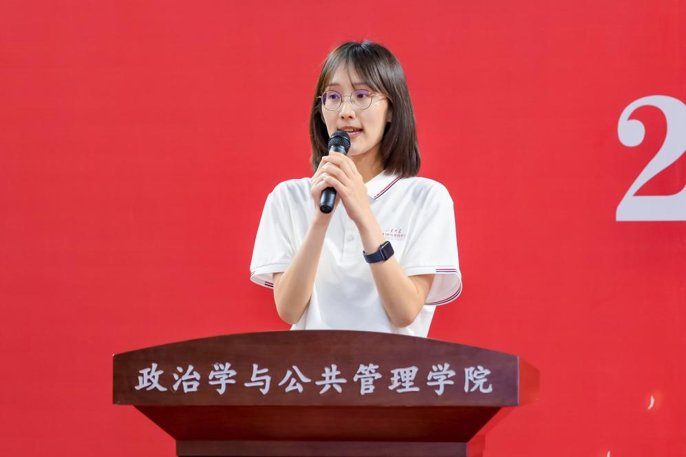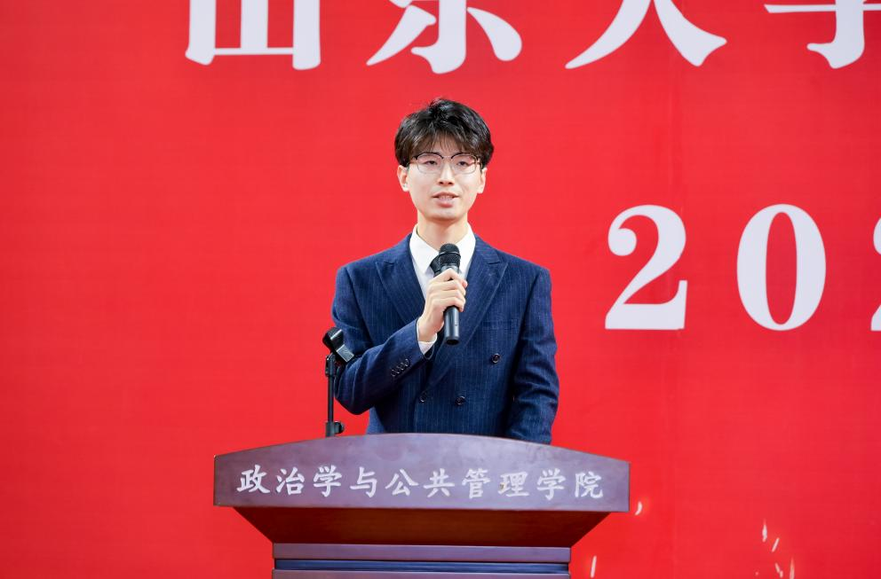 2021级硕士研究生王洪超作为老生代表发言。王洪超表示,在山大澳门网投,同学们可以怀抱梦想,又脚踏实地;可以潜心学术,又躬身实践;可以感知世界,且改变世界。作为山大新政管人,同学们应当热爱祖国河山,胸怀复兴理想,砥砺前行,做一名为祖国建设奋发有为的山大人。