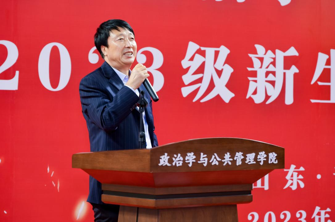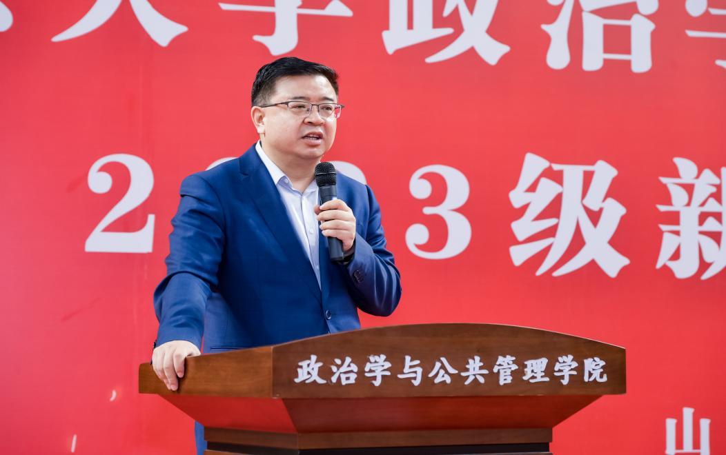 同时马奔对2023级新同学提出了三点希望:一是积极乐观、快乐成长。在面对成长带来的挑战和机遇,要心怀乐观、坚毅勇敢,不断追求内在的收获,并感受到知识的魅力和自我实现的喜悦;二是潜心研学、专业为本。既要有“天生我材必有用,千金散尽还复来”的学术自信,也要有“长风破浪会有时,直挂云帆济沧海”的学术壮志,还要有“衣带渐宽终不悔,为伊消得人憔悴”的学术热情,最重要的是要有“先天下之忧而忧,后天下之乐而乐”的学术情怀。要通过刻苦的学习和实践,培养自己的专业素养,建立坚实的学术基础和求知欲望,为将来的发展建立坚实的基础。三是心怀天下,全球视野。希望同学们能心怀天下,牢记山大“为天下储人才、为国家图富强”的办学宗旨和学院“知政为公,厚德笃行”的院训,培养开放思维,拓宽国际视野,积极参与国际交流与合作,为未来的全球事务作出积极贡献。