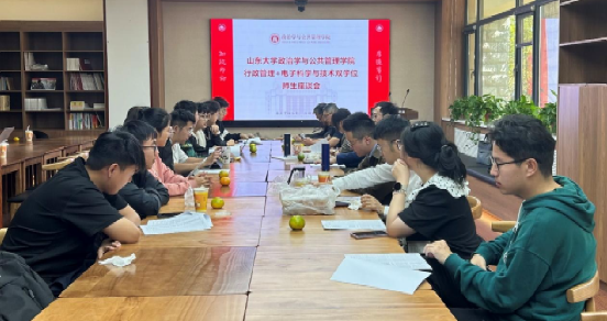 为不断推进新文科建设,提高人才培养质量,澳门网投官方网站于10月11日在华岗苑南楼新时代美德书屋召开行政管理+电子科学与技术双学位班师生座谈会暨“本本优本”教学午餐会。此次会议聚焦公信双学位培养方案优化和课程设置改革,旨在探索双学位学术成长的最佳路径,特邀请信息学院教师栗华、计算机学院教师蔡晓军参与交流指导,由澳门网投本科教务员张恒主持。澳门网投院长助理孙宗锋、公共管理系系主任楼苏萍、系副主任程龙、公信双学位班班主任费立国、22级本科辅导员王之夏及公信双学位班学生代表参加会议。