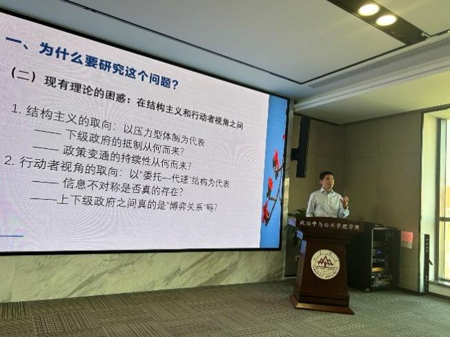 张翔教授的讲座主题为''关于'行政共同体'的初步思考:地方政府府际关系的一种组织学分析''。张翔教授首先从研究价值的角度出发探讨了''行政共同体''可行性,并从''责任''这一新的视角切入出发阐释了自己的研究发现。在此基础上,他将''行政共同体''的研究继续细化,从概念构建、历史意涵、分析框架、运行过程四个方面针对该概念展开系统性阐述。他强调,除''行政共同体''自身的研究外,相关的延伸研究也非常关键的,例如公共政策执行、地方政府创新与问责制度等。最后,张翔教授提出,该研究在理论对话和方法深化方面还有进一步的探索空间,也希望感兴趣的同学可以在上述领域进行新的尝试。