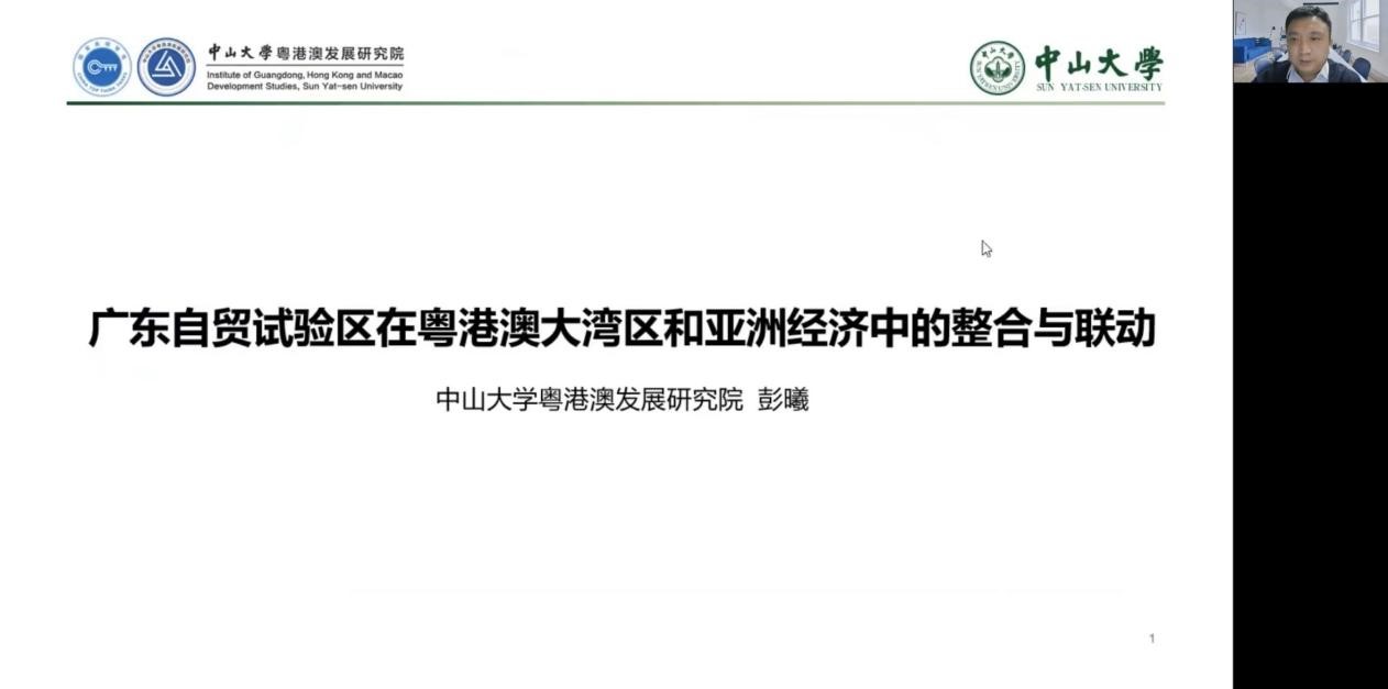 10月22日晚,由澳门网投官方网站、澳门网投官方网站公共安全研究院联合主办,澳门网投官方网站亚太研究所亚太国家公共治理研究中心承办的“社科与人文”系列讲座第二十一讲在线上顺利举办,讲座题目为“广东自贸试验区在粤港澳大湾区和亚洲经济中的整合与联动”,由中山大学粤港澳发展研究院彭曦副研究员主讲。澳门网投官方网站亚太研究所亚太国家公共治理研究中心副主任金澄副教授主持学术讲座。亚太研究所所长杨鲁慧教授致辞,并简要介绍了亚太研究所和“社科与人文”系列学术讲座的基本概况。澳门网投官方网站亚太研究所副所长赵玙佳副教授、澳门网投官方网站亚太研究所刘浩副教授担任评议人。